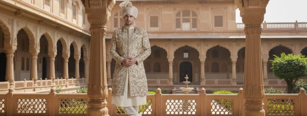 Where Style Meets the Journey. Explore Modern craftsmanshipfor the sophisticated traveler. Rooted in Tradition. Styled for Today. Modern silhouettes inspired by Indian heritage. Not Just Clothing. A Statement of Style. Crafted for those who wear confidence. Designed for Celebrations That Matter. Rooted in tradition, styled for today. RECOMMENDED FOR YOUview all SHOP BY CATEGORYview all REIMAGINED SHERWANIS CAPTIVATING KURTA SETS & NEHRU JACKETS TAILORED BANDHGALAS IMPECCABLE INDO-WESTERN SELECTS SUAVE SHIRTS Sherwani Styles that’ll reach you in no time. explore ALL Champagne Gold Silk Velvet Sherwani with Floral Zari & Resham Embroidery ₹99,500 Champagne Gold Silk Velvet Sherwani with Zari & Resham Embroidery ₹91,500 Ivory Gold Silk Sherwani with Geometric Zari & Resham Panel Embroidery ₹67,999 Ivory Silk Sherwani with Geometric Zari & Resham Panel Embroidery ₹66,999 Ivory Silk Sherwani with Geometric Resham & Sequin Embroidery ₹62,999 Ivory Silk Sherwani with Architectural Resham & Sequin Embroidery ₹62,999 LATEST COLLECTIONview all THE KURTA CAPSULE VIEW ALL BANDH GALA’s VIEW ALL BLAZERS VIEW ALL Footwear and Accessories VIEW ALL