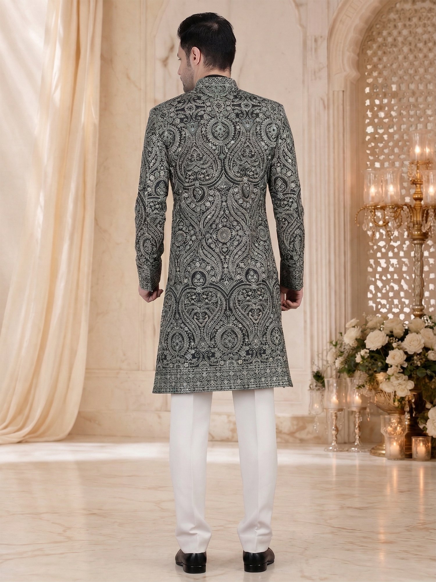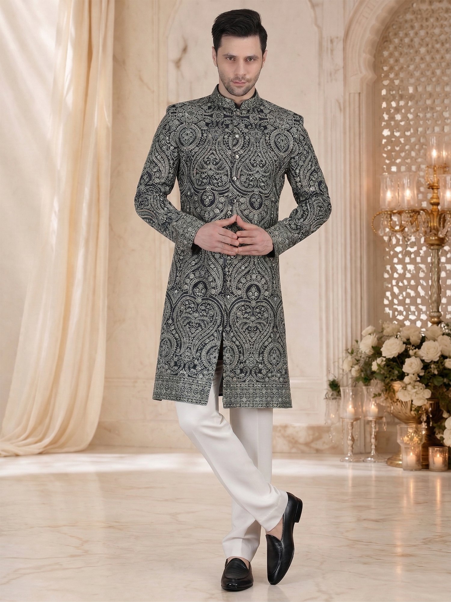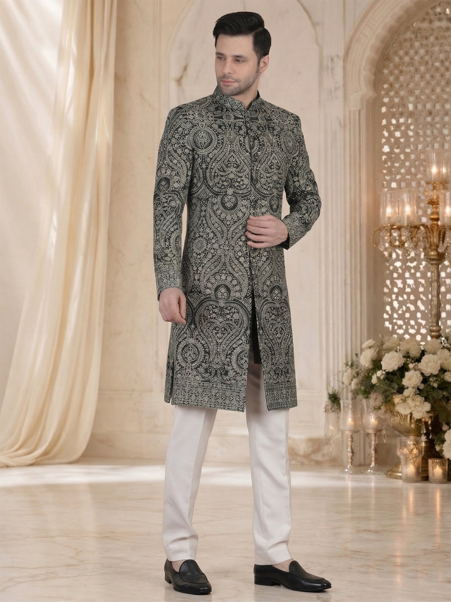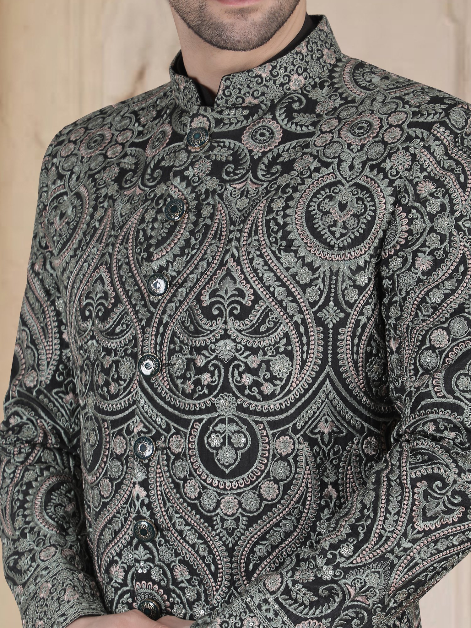 Black Paisley Sherwani for Men – Fabric & Craftsmanship