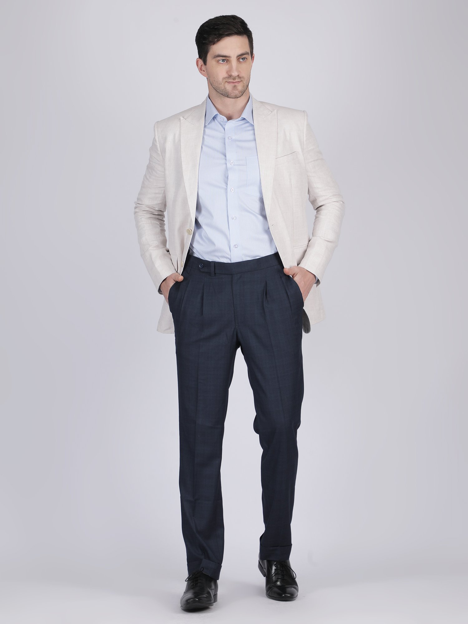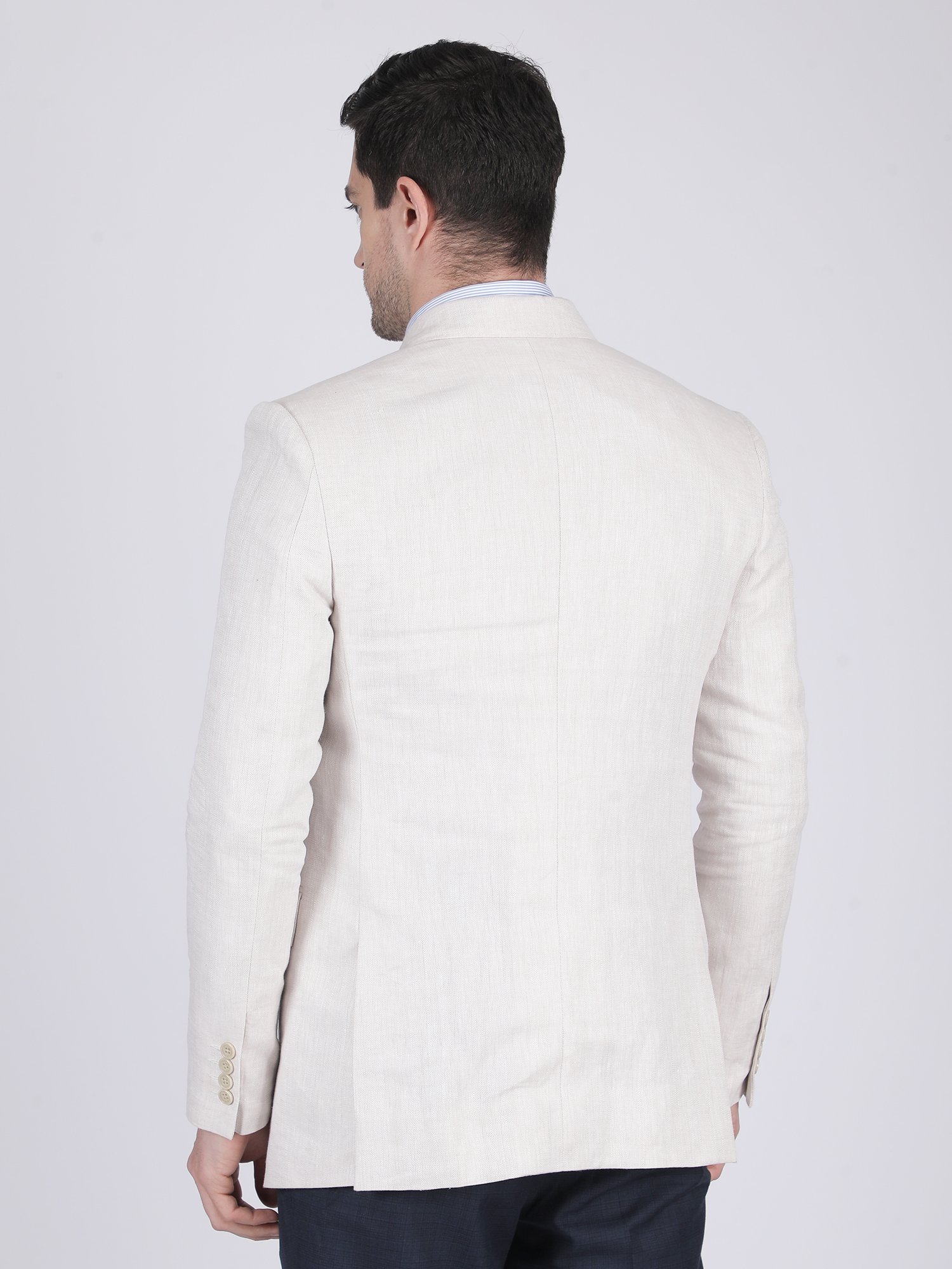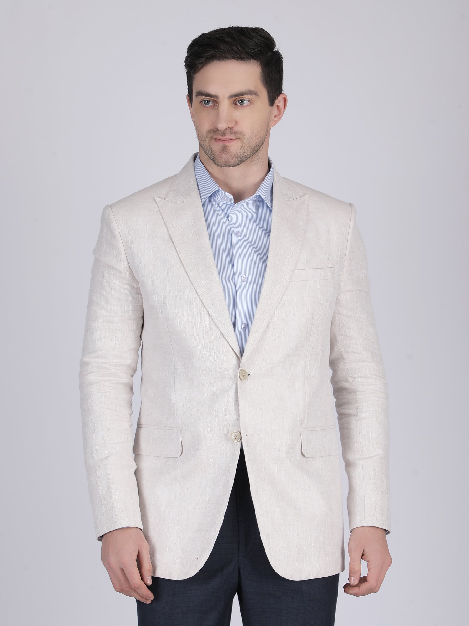 We craft this blazer using premium Linen Club fabric known for its superior quality, breathability, and smooth finish. The fabric allows excellent airflow, making it ideal for warm weather and long working hours. The blazer features clean lapels, precise stitching, and structured panel construction that maintains a sharp silhouette. The natural texture of linen enhances depth while keeping the look understated and elegant. Moreover, the construction ensures durability while maintaining comfort and flexibility. Each detail reflects modern craftsmanship combined with premium fabric quality.
