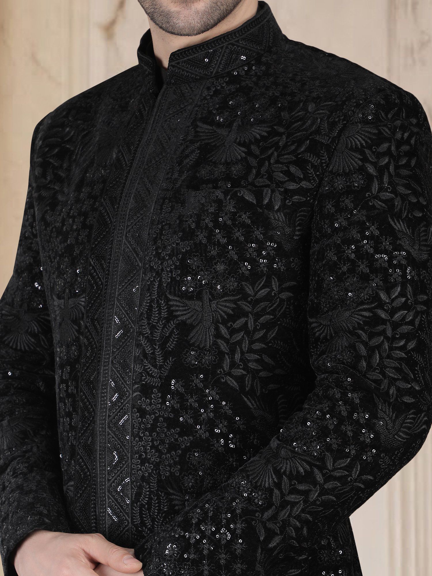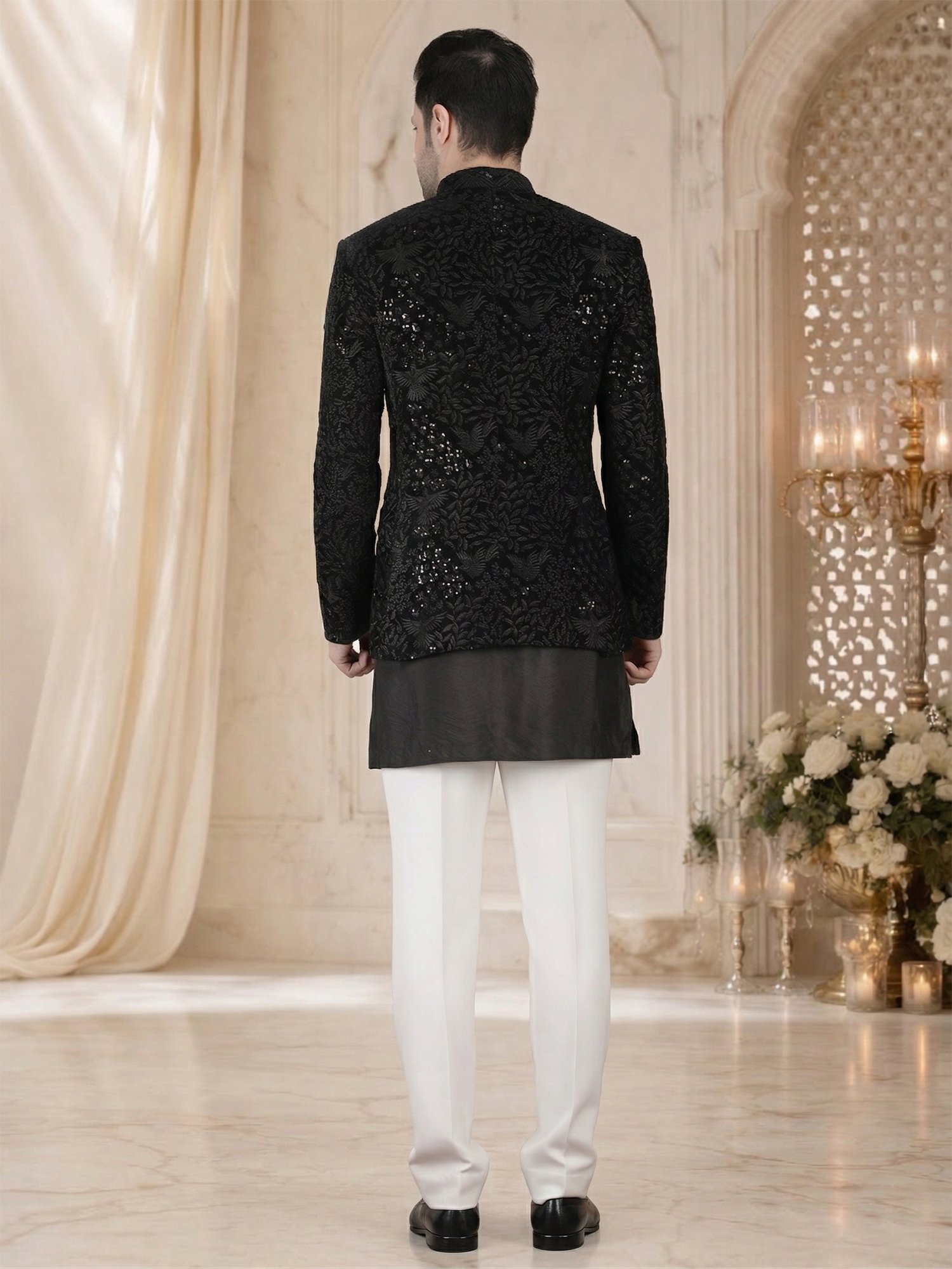 Black Sequin Embroidery Bandhgala for Reception