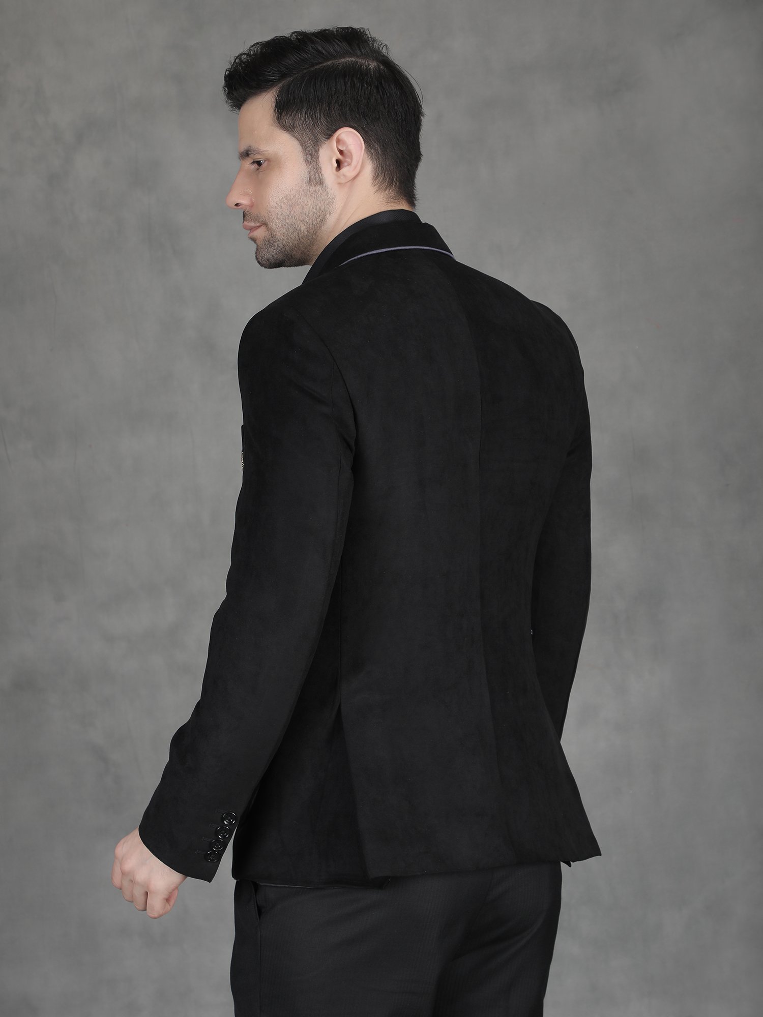 Black Suede Embroidery Blazer for Reception
