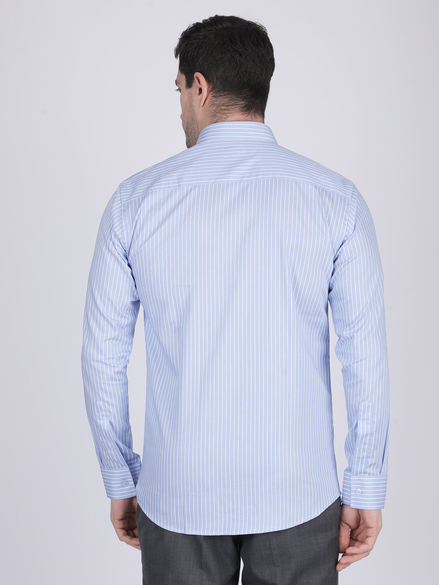 Blue Striped Fine Cotton Formal Shirt with Tailored Fit for Office and Reception