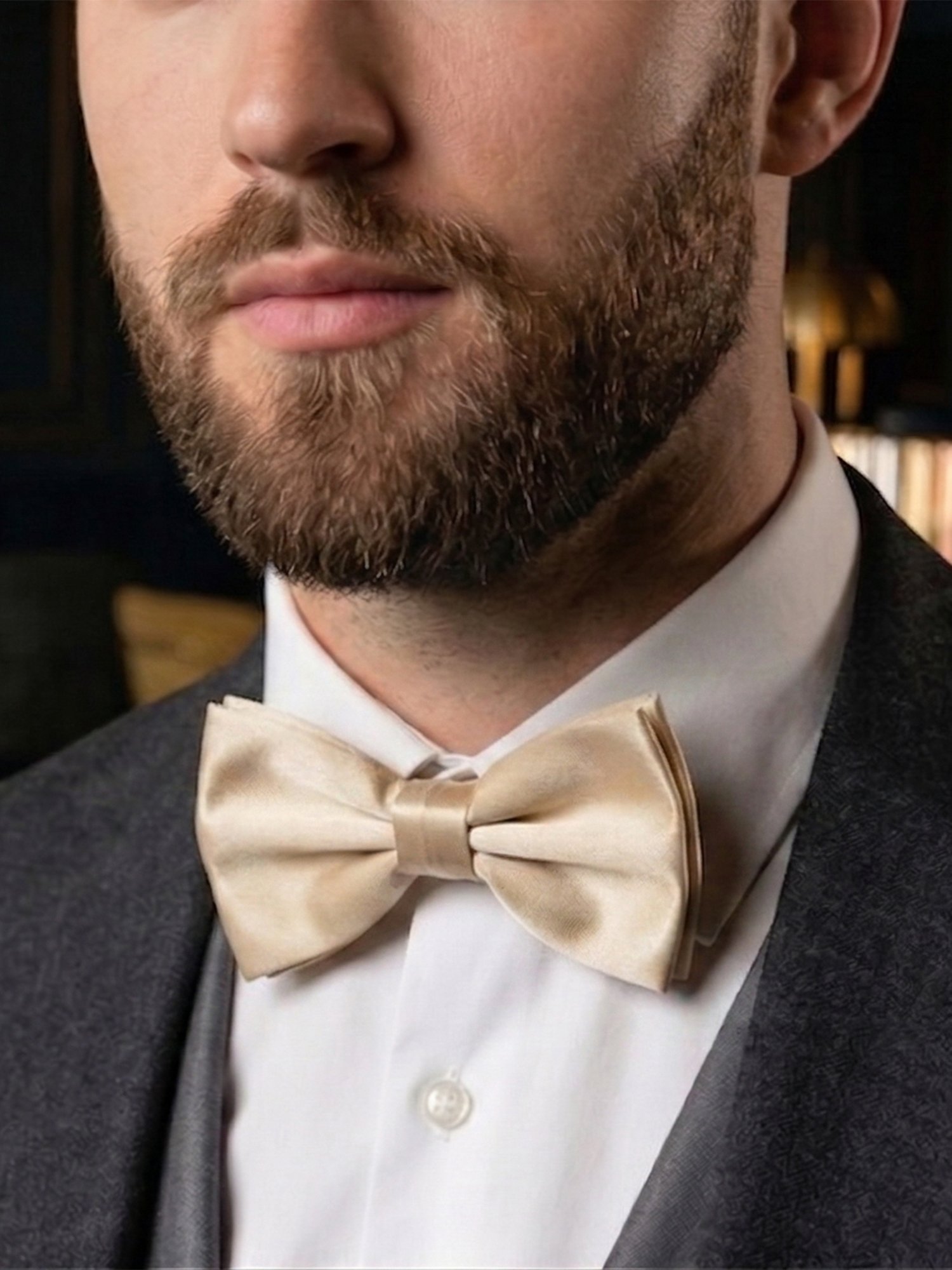 Beige Satin Bow Tie Premium Formal Accessory for Men