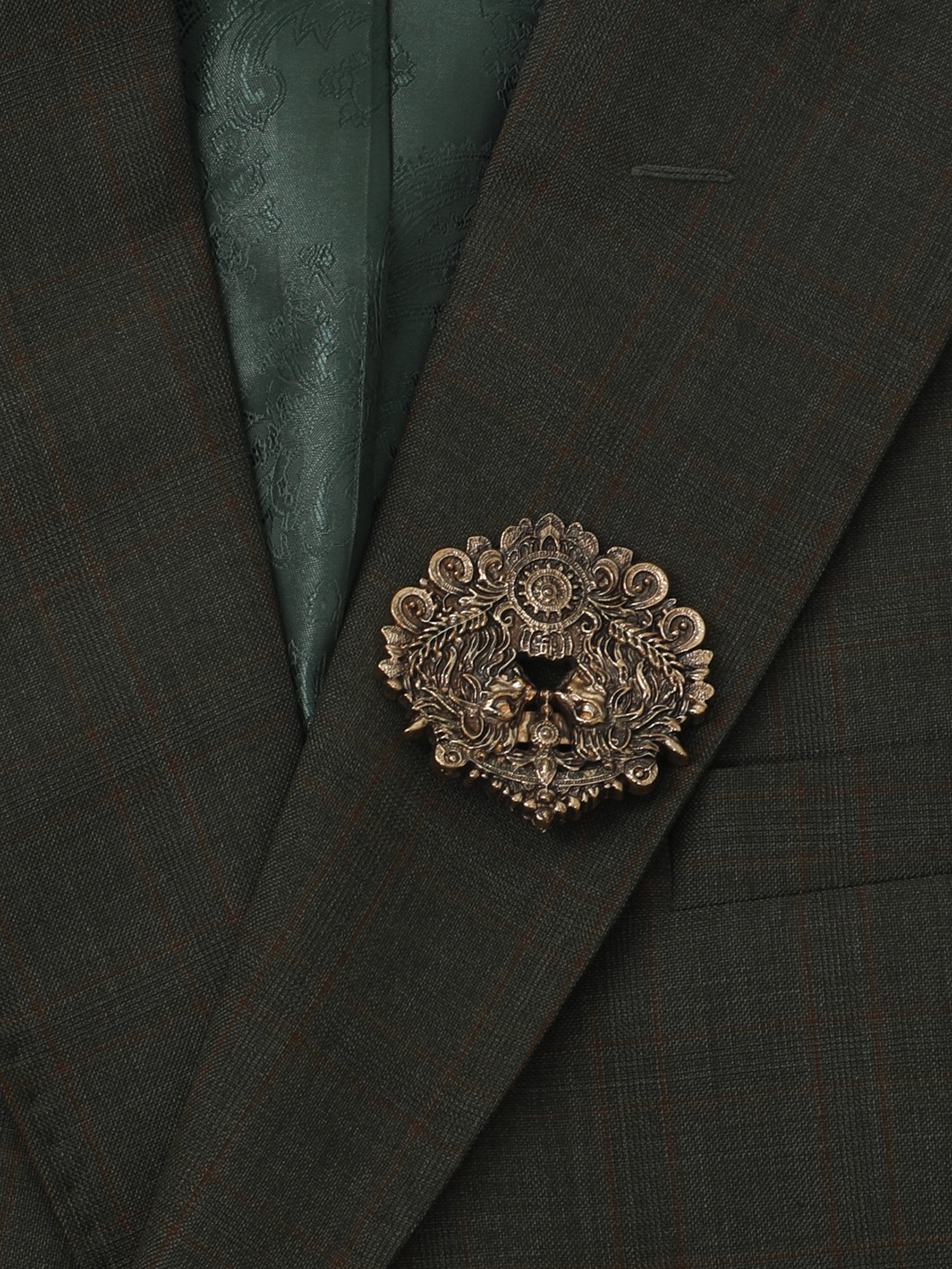 This Brooch is crafted for reception wear, wedding styling, and premium occasions where heritage design defines true luxury. The intricate royal crest motif reflects traditional craftsmanship, while the antique finish creates a bold and timeless appearance. Therefore, this Brooch is ideal for men who want a distinctive accessory with strong character and refined elegance.