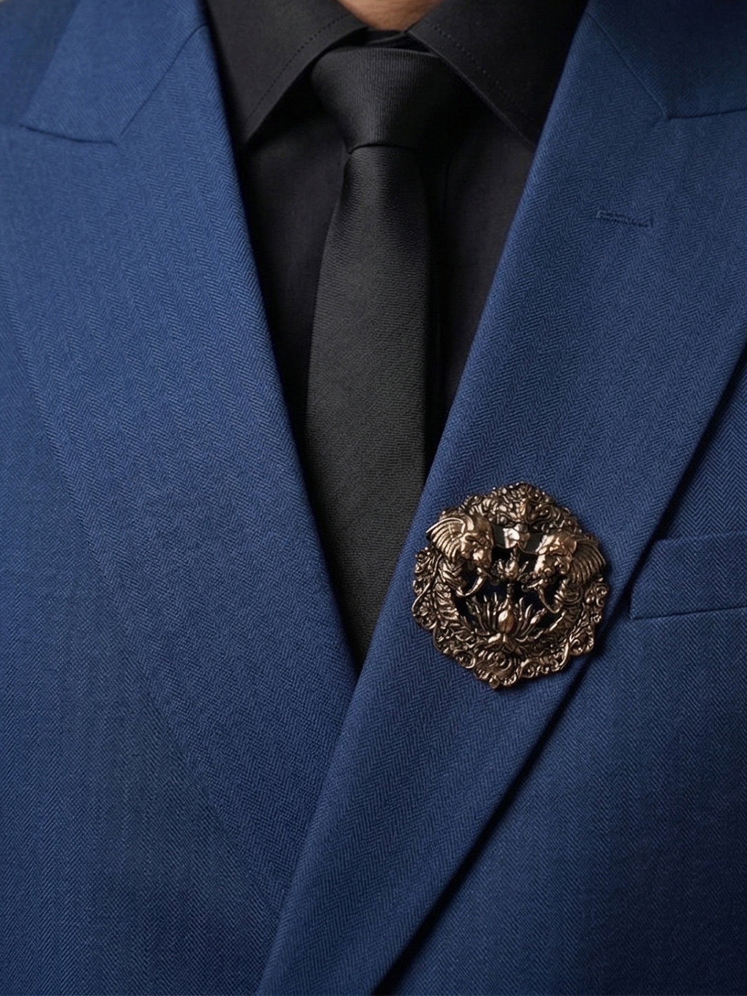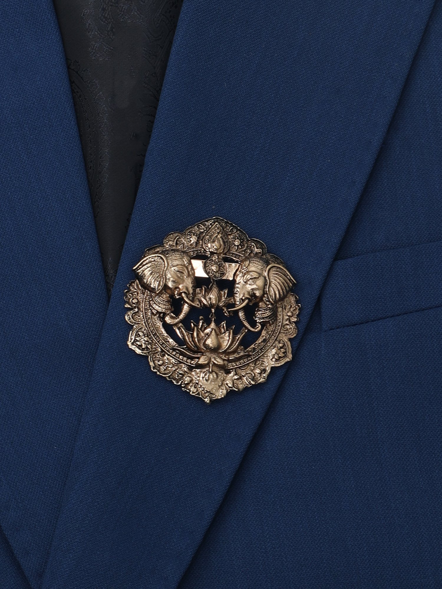 This Brooch is designed for reception wear, wedding occasions, and festive styling where heritage and cultural richness define true luxury. The royal elephant motif represents strength, prosperity, and tradition, while the intricate circular frame enhances its regal appearance. Therefore, this Brooch becomes an ideal accessory for men who want to express Indian heritage with a refined and premium touch.