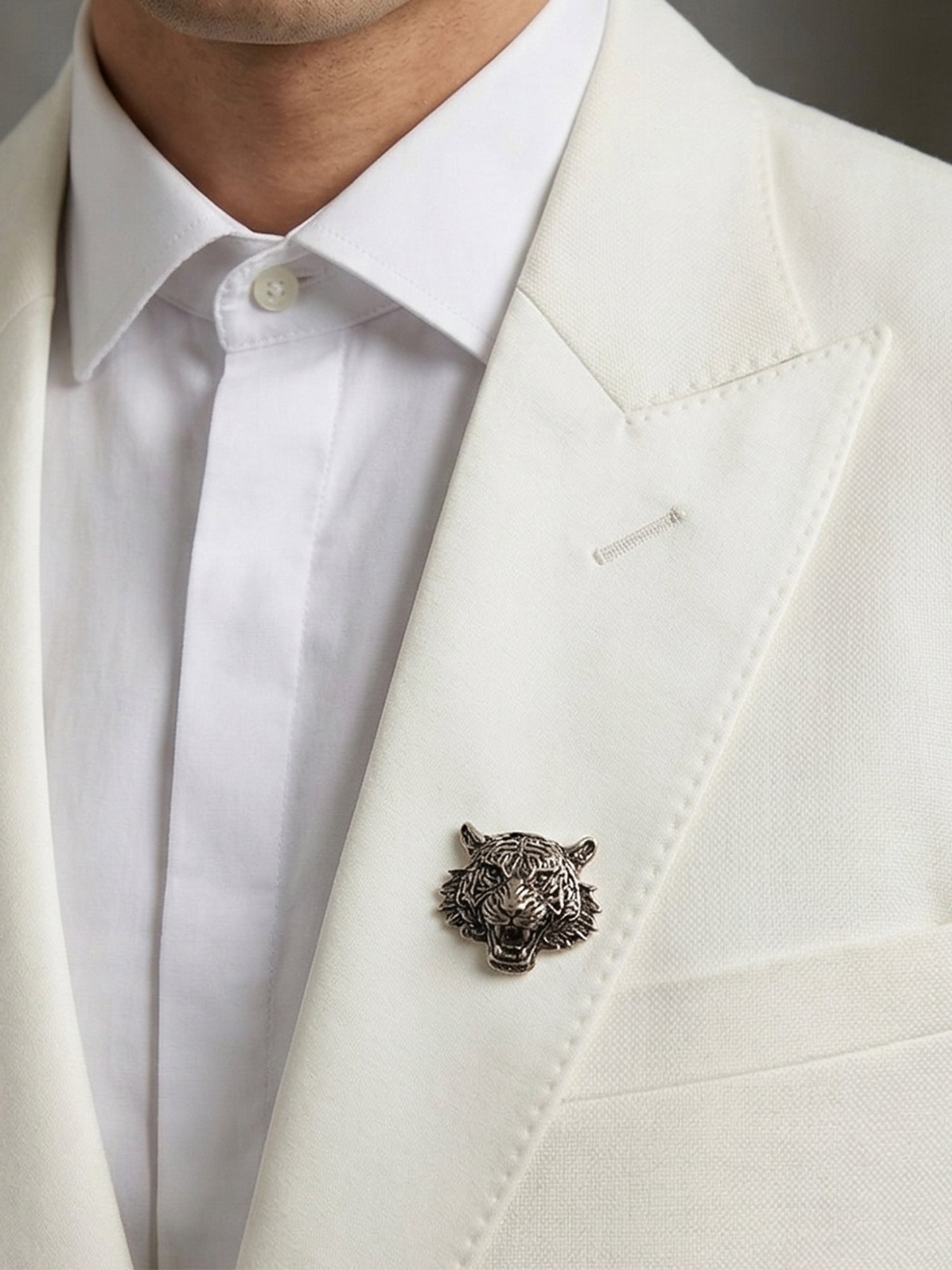 This Brooch is designed for reception wear, formal occasions, and premium styling where bold identity and sharp detailing define your presence. The tiger head motif symbolizes strength, confidence, and dominance, making this Brooch a powerful accessory for men who want to stand out with controlled elegance.