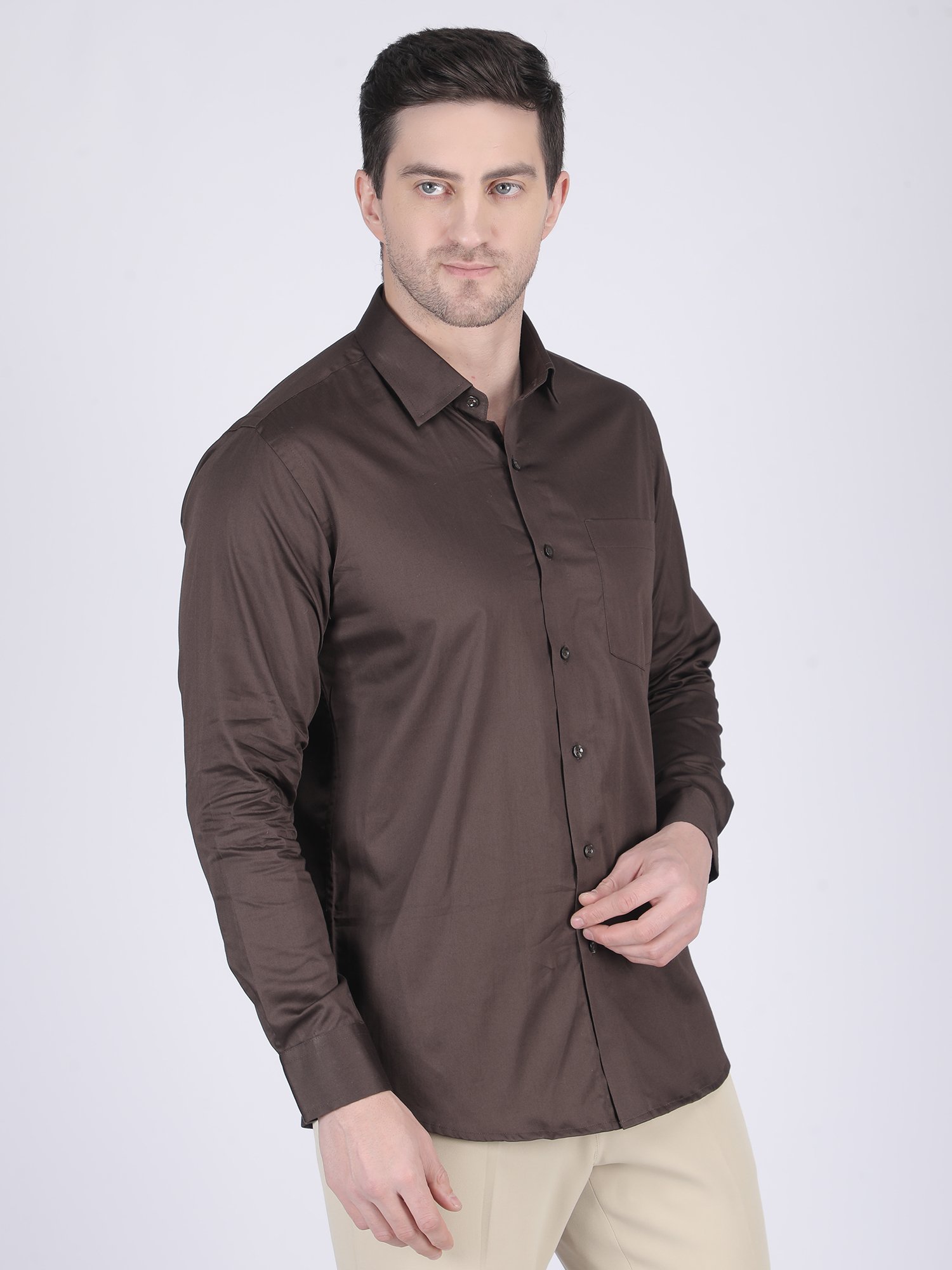 This Brown Formal Shirt is designed for evening occasions, office wear, and refined formal styling. It offers a rich and sophisticated look, while the solid color creates a clean and powerful visual presence. The shirt features a structured silhouette along with a sharp collar and clean front placket, so it delivers a confident and polished appearance.