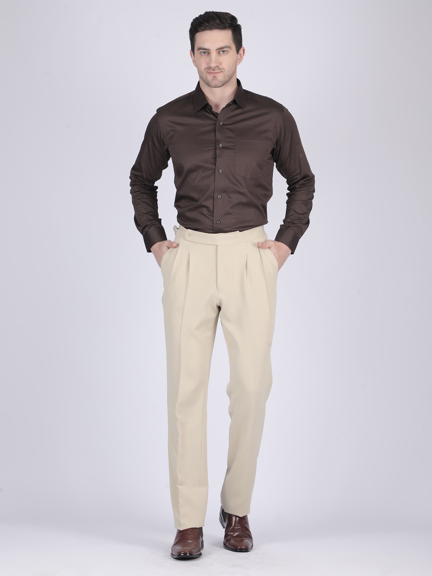The fabric provides a smooth and breathable feel, which ensures comfort throughout the day. At the same time, the deep brown tone adds warmth and uniqueness, which sets it apart from standard black and navy options. The tailored fit enhances body structure and maintains a sharp silhouette. Therefore, this Brown Formal Shirt blends simplicity with refined elegance, making it ideal for men who prefer understated luxury.
