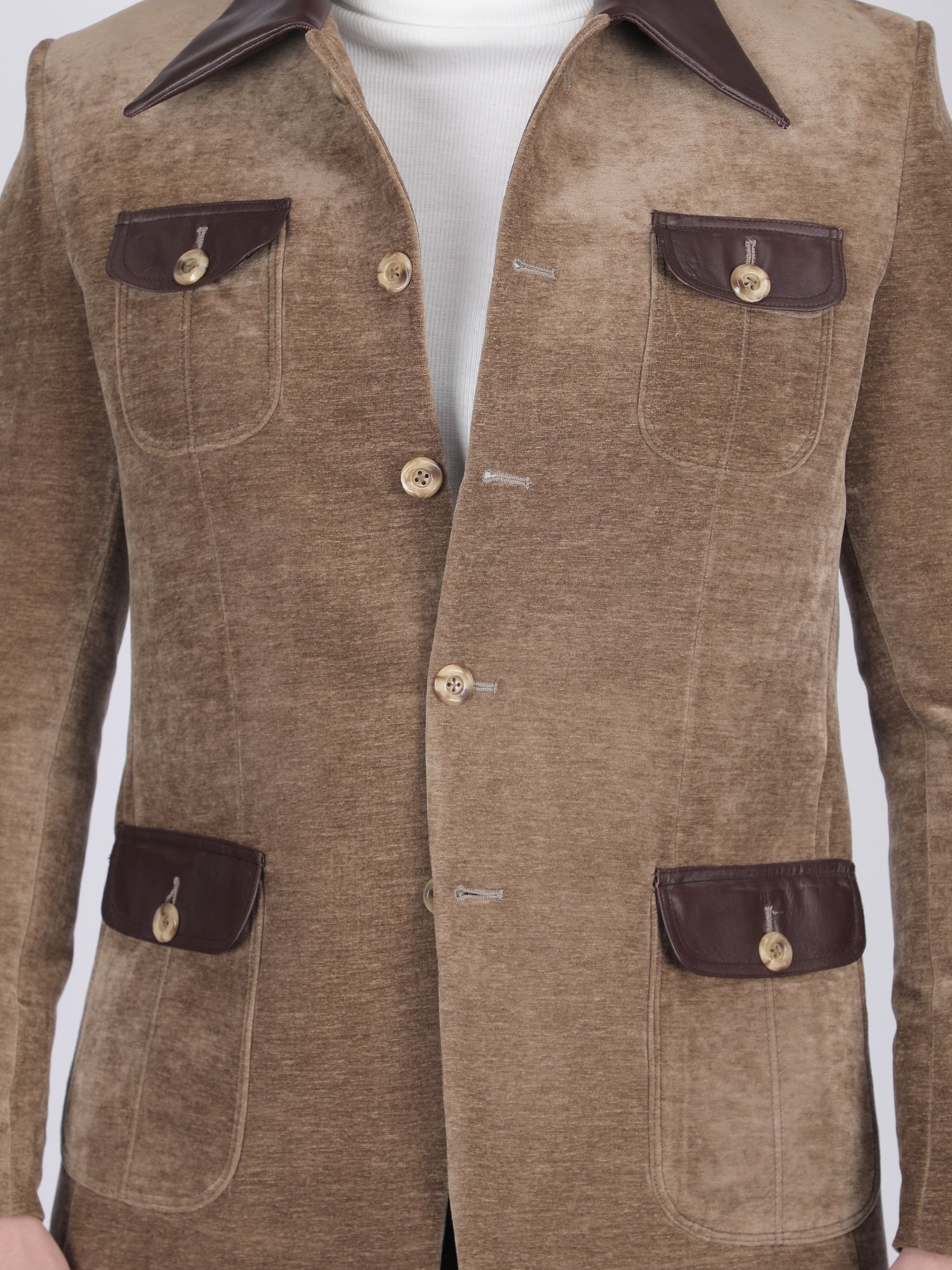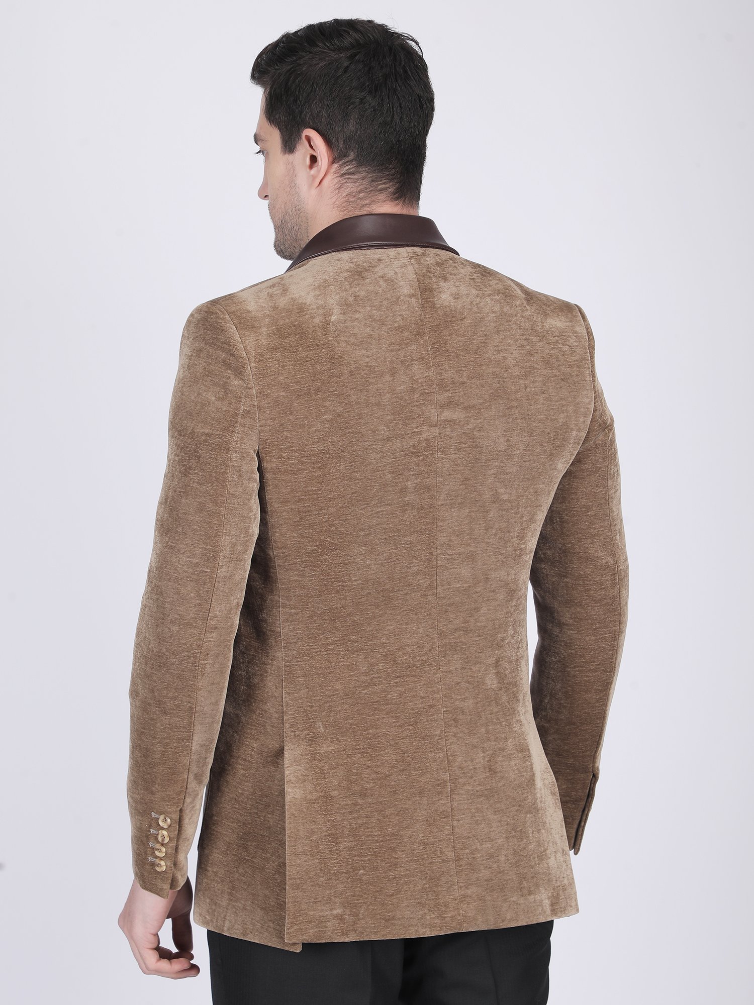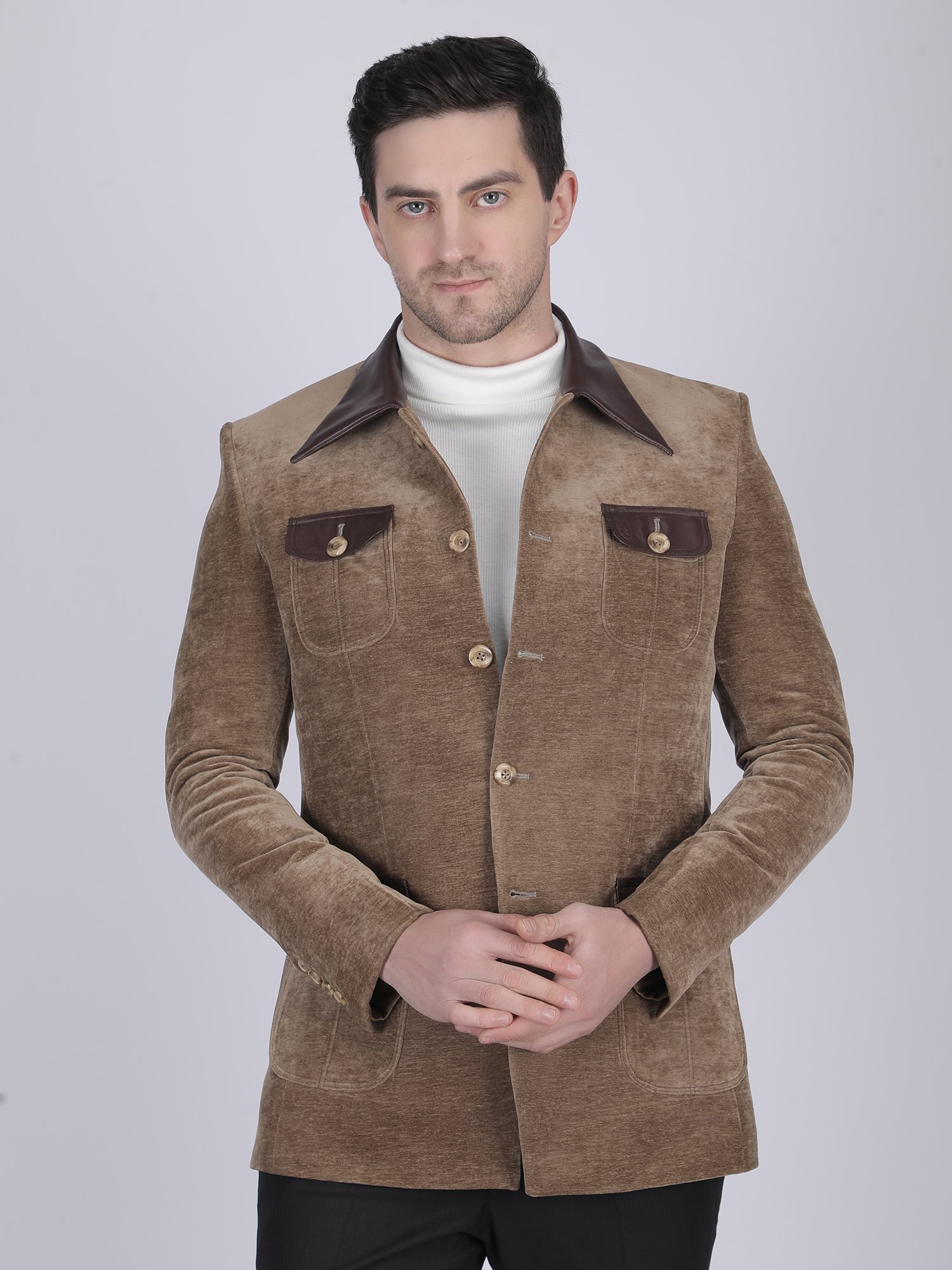 This Brown Suede Leather Trim Blazer suits receptions, evening gatherings, cocktail events, and premium casual occasions. The textured fabric and leather accents create a standout look. Therefore, it allows you to present a confident and stylish appearance effortlessly.