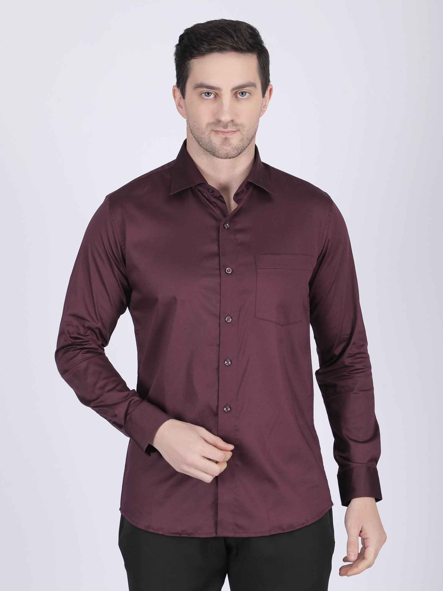 This shirt works well for office wear and evening outings. The burgundy color adds depth, while the clean design keeps it refined. As a result, it delivers a confident and stylish presence.