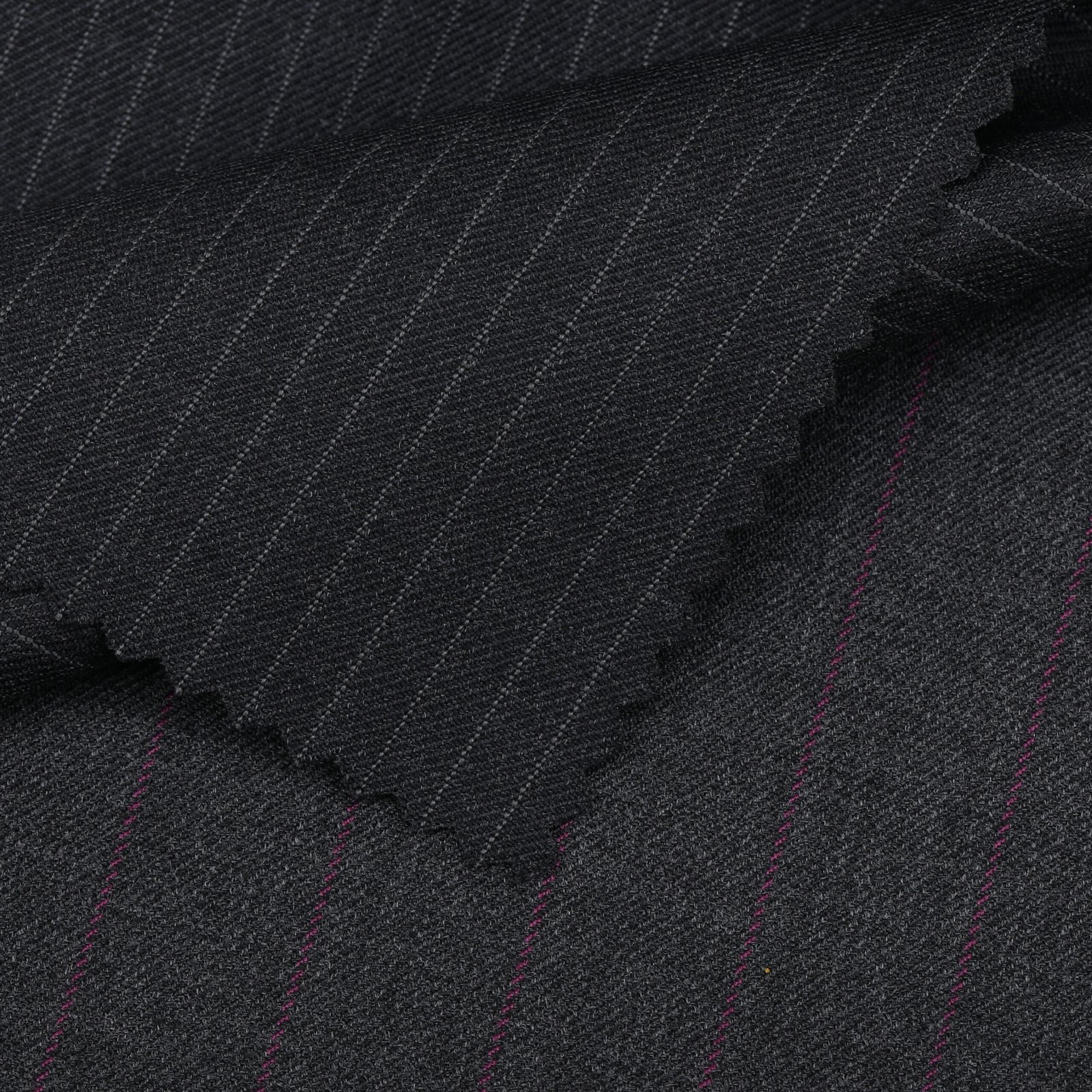 A commanding expression of elite tailoring, this near-black charcoal fabric is accentuated with fine pinstripes that create a sleek and powerful visual impact. Crafted for the modern leader, its deep tone and superior drape deliver a sharp, structured silhouette, making it ideal for executive power suits and high-end formal occasions.