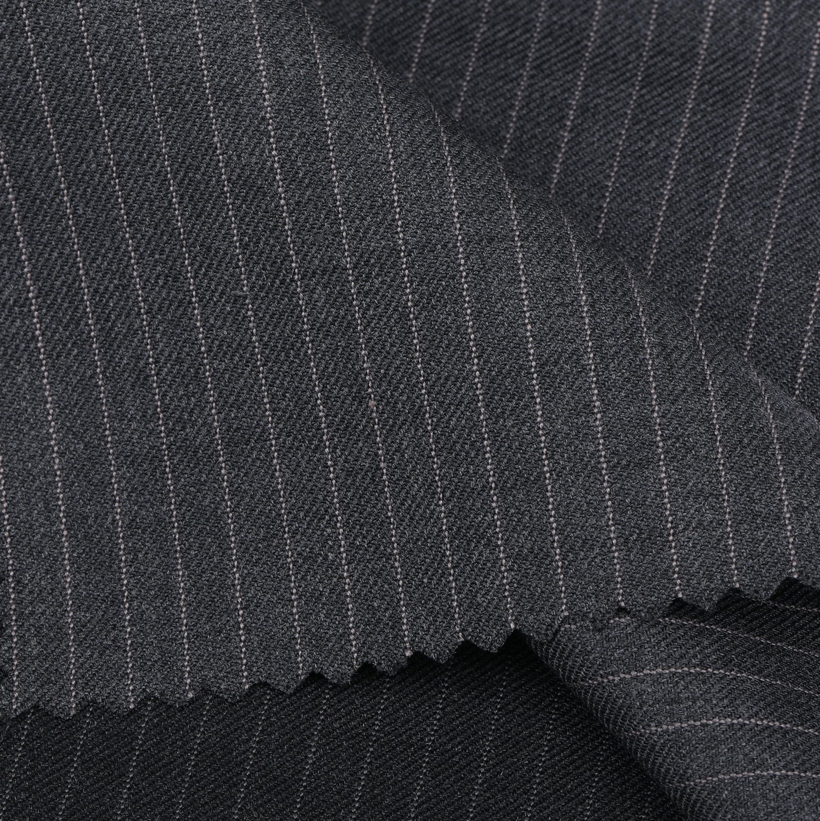 A powerful statement of modern elegance, this deep charcoal fabric is defined by its refined pinstripe detailing that enhances its sharp and structured appearance. Crafted for elite tailoring, its rich tone and superior drape create a commanding silhouette, making it an ideal choice for executive wear and high-end formal occasions.