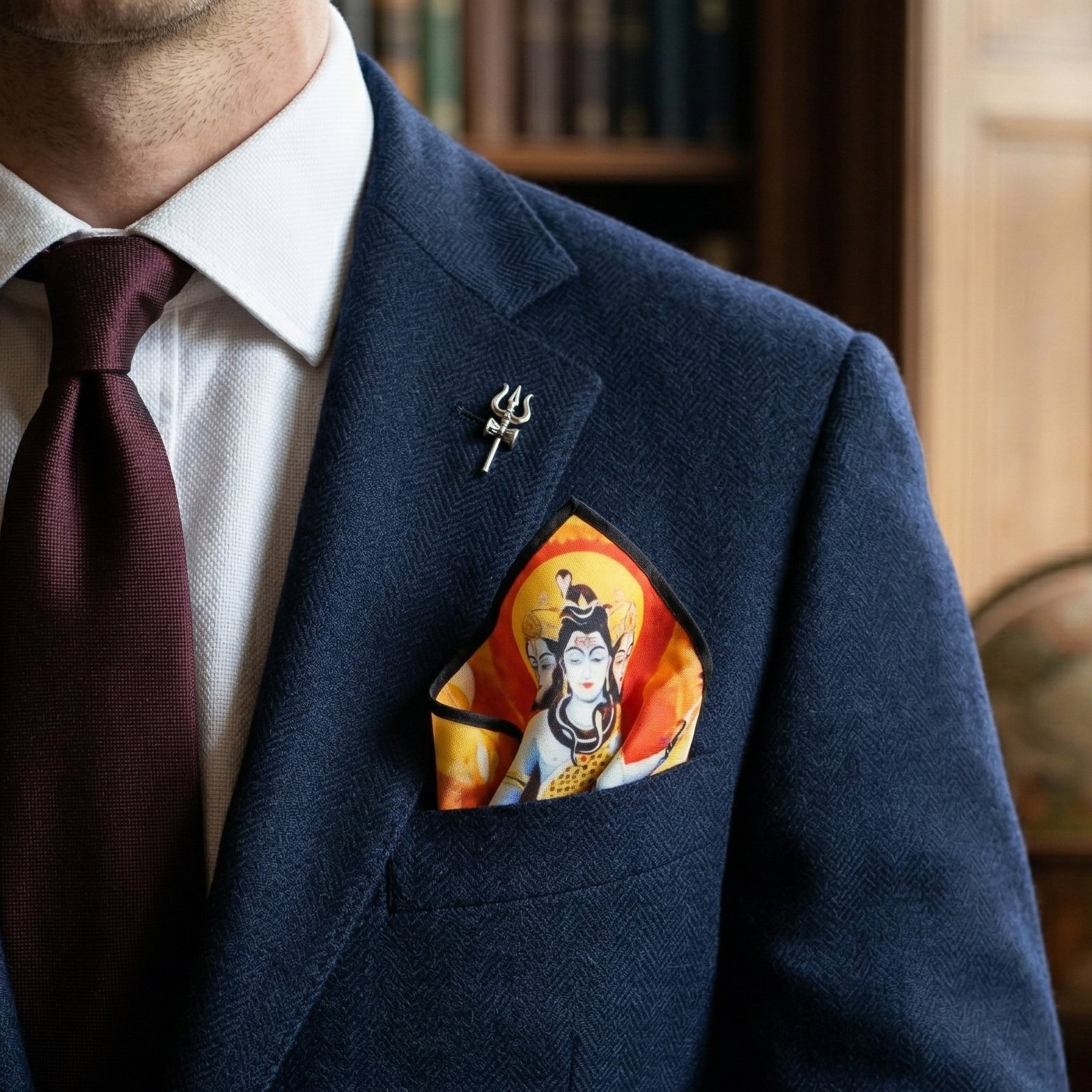 Elevate your ensemble with this gold silk pocket square, designed with a imperial aesthetic. Crafted from premium silk, it offers a rich texture and refined finish, making it a perfect accessory for formal and festive occasions.