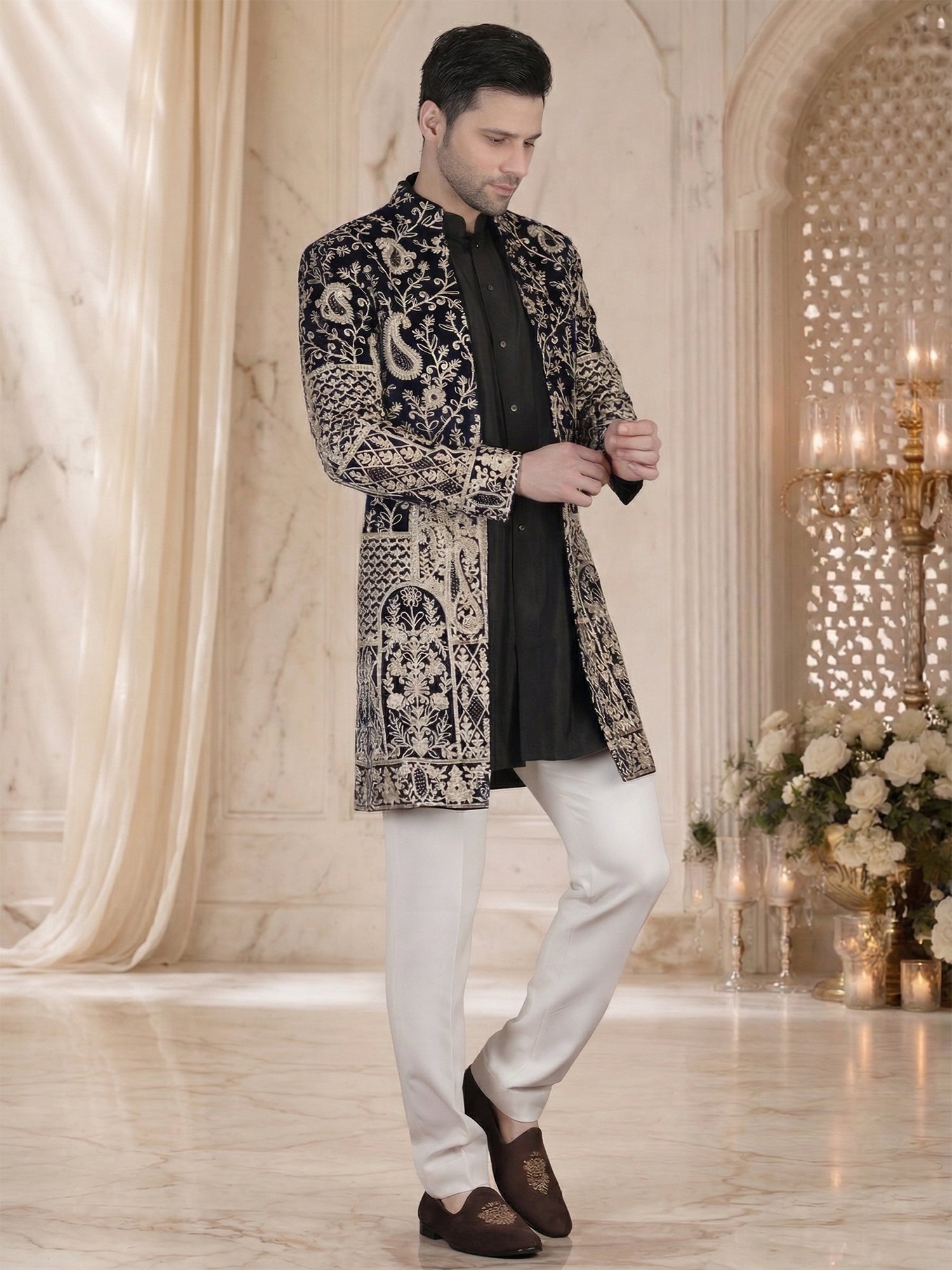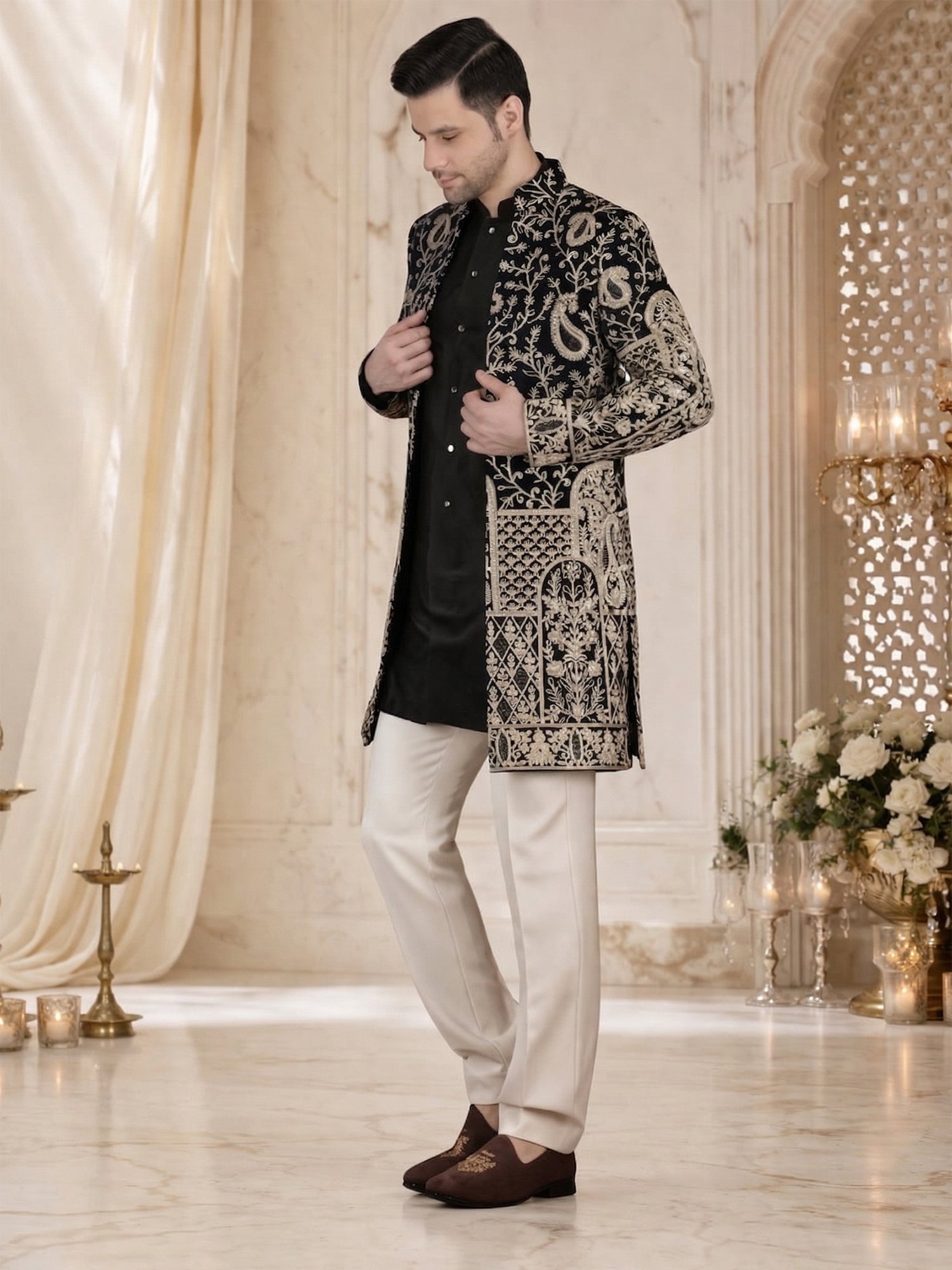 Black Gold Embroidered Sherwani for Men – Fabric & Craftsmanship