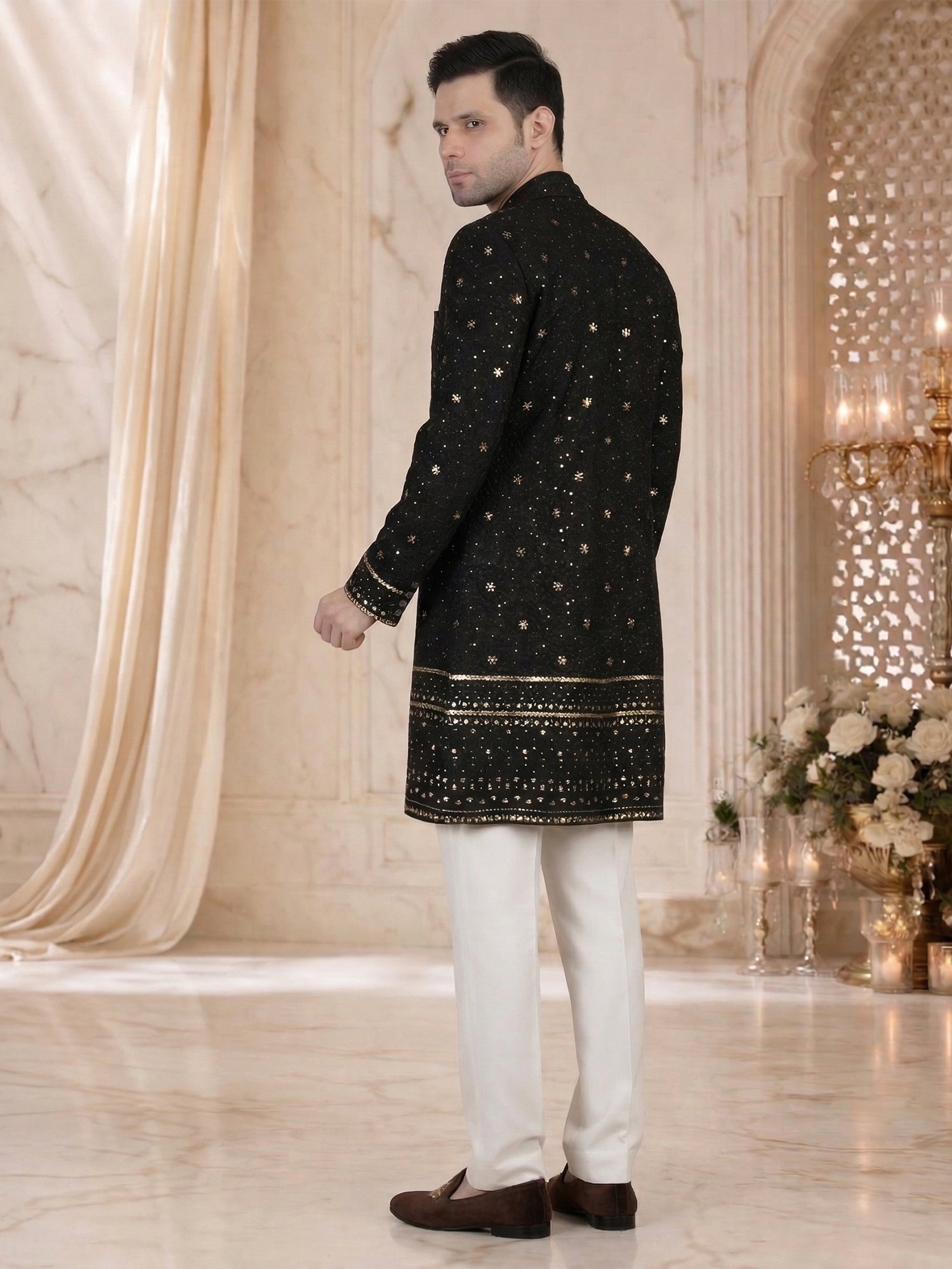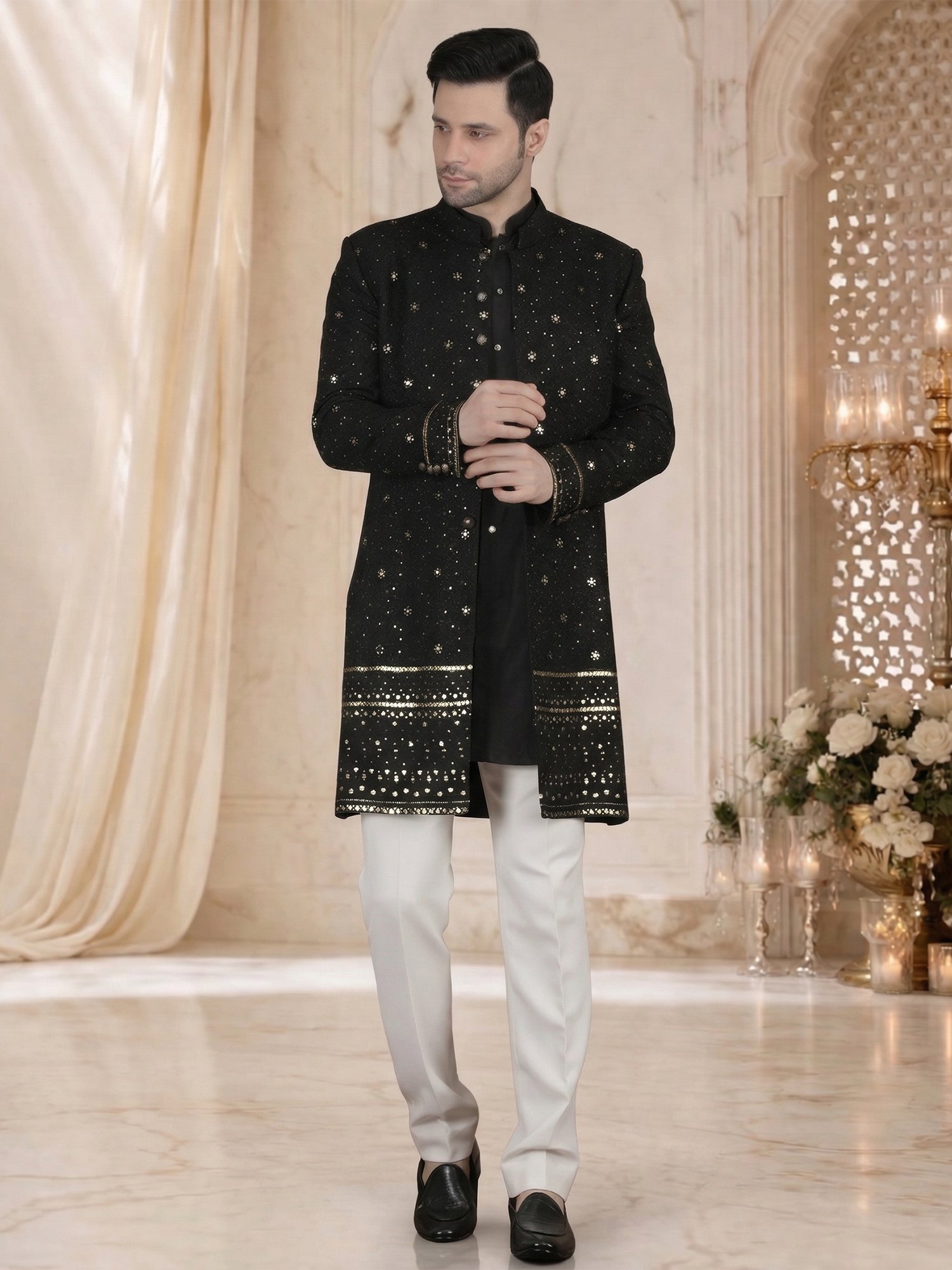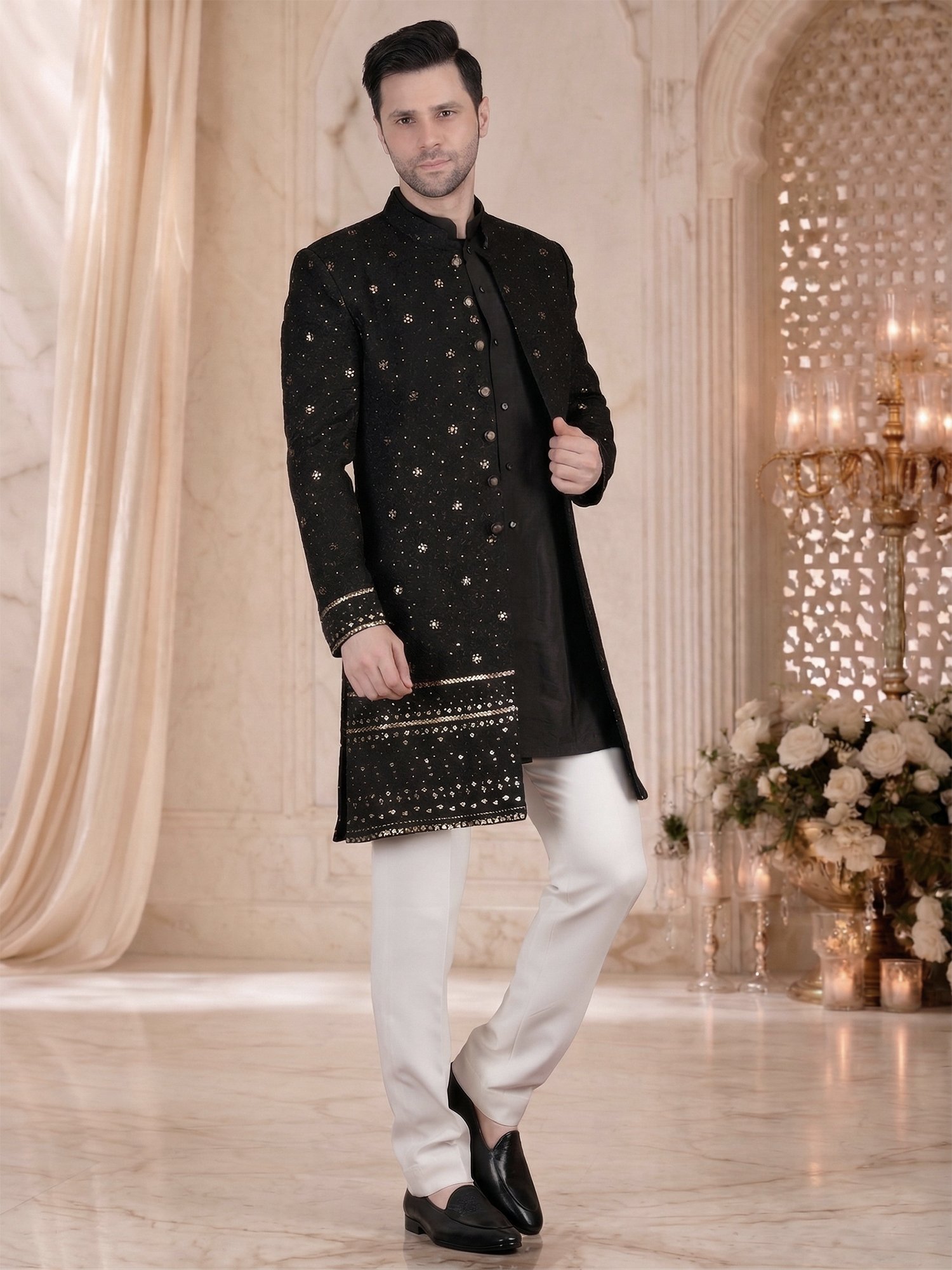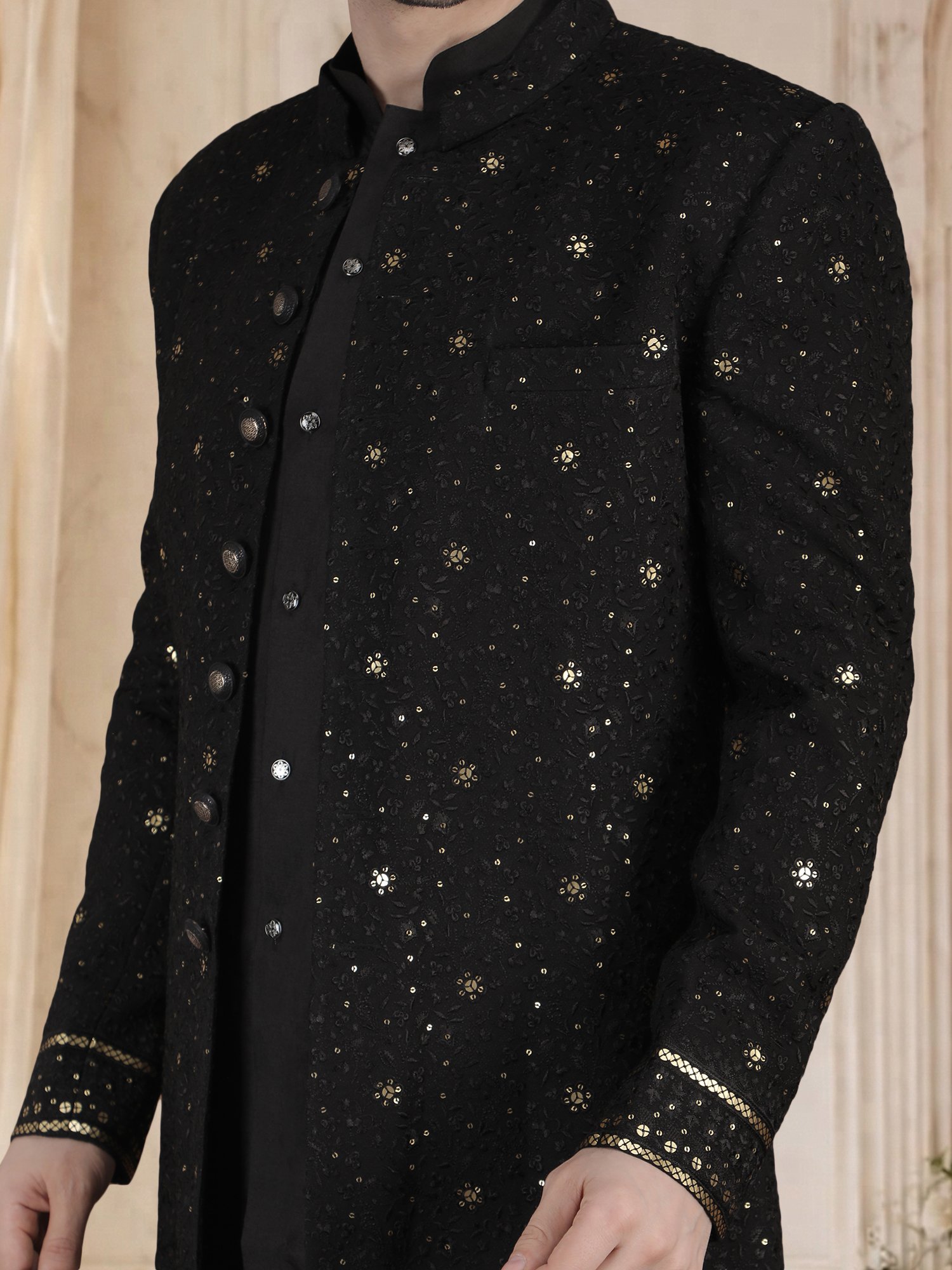 Black Sequin Sherwani for Men – Fabric & Craftsmanship