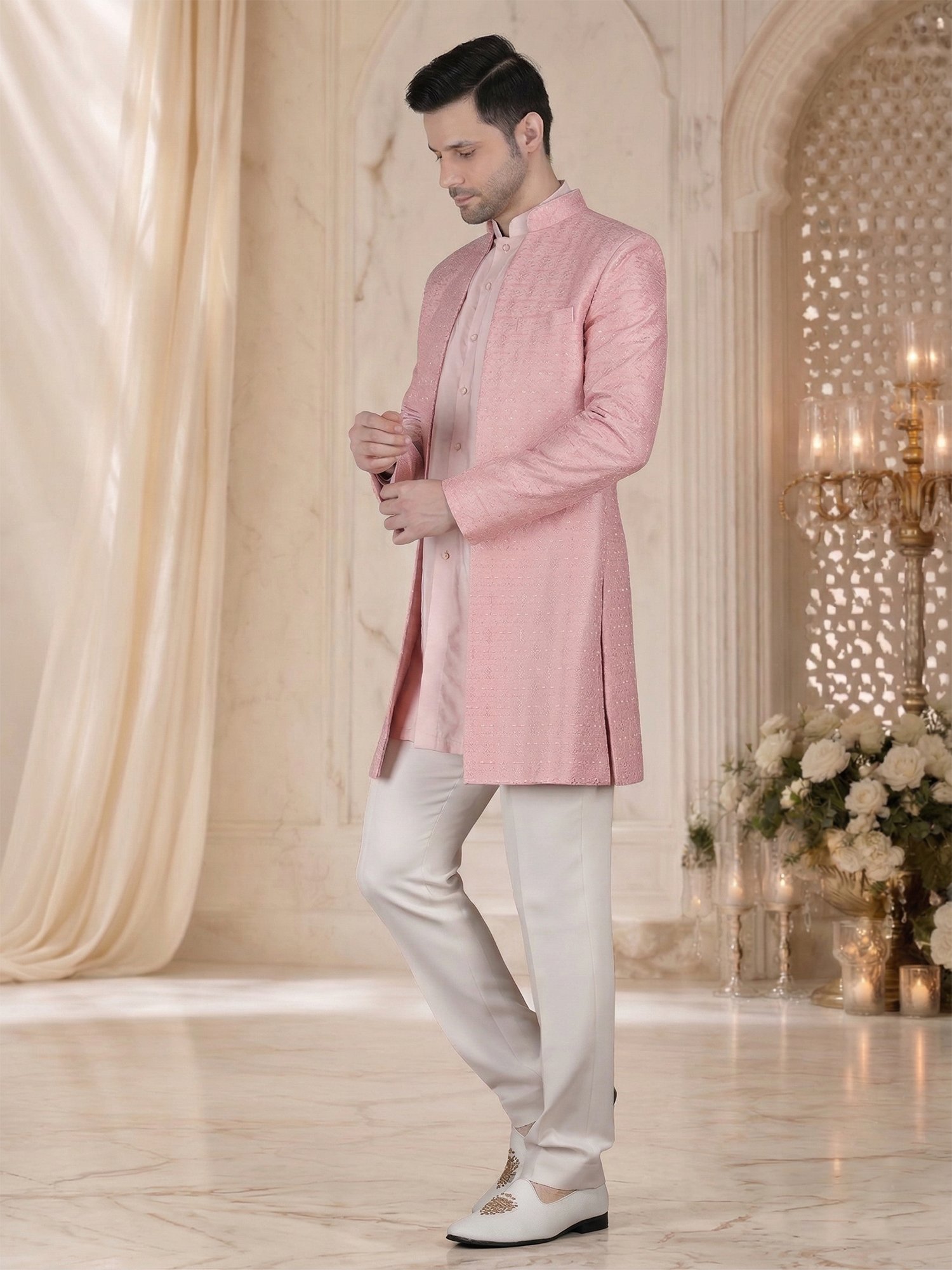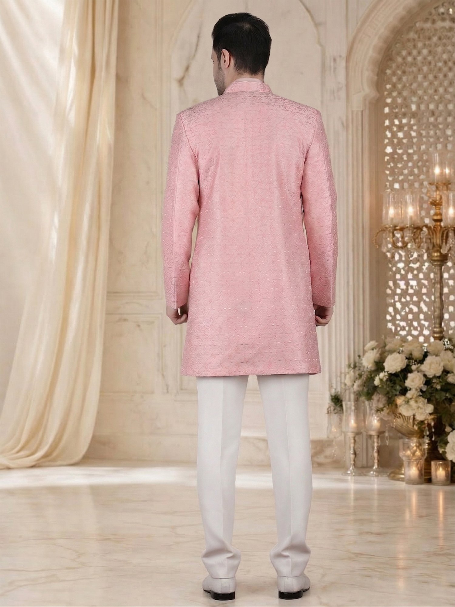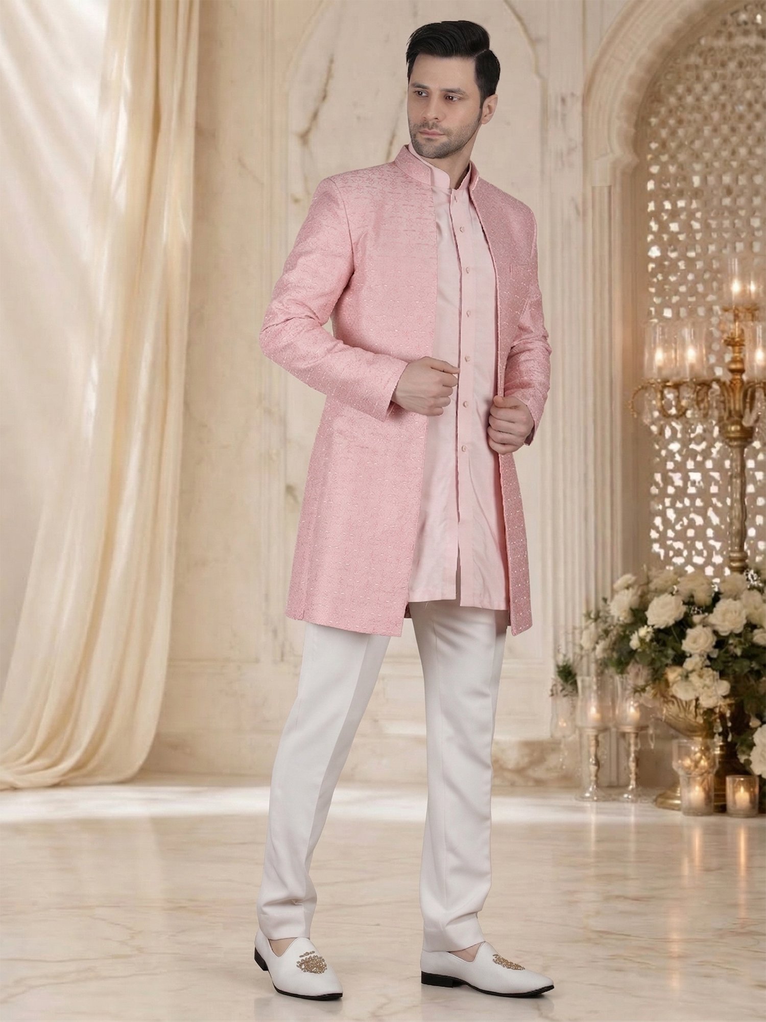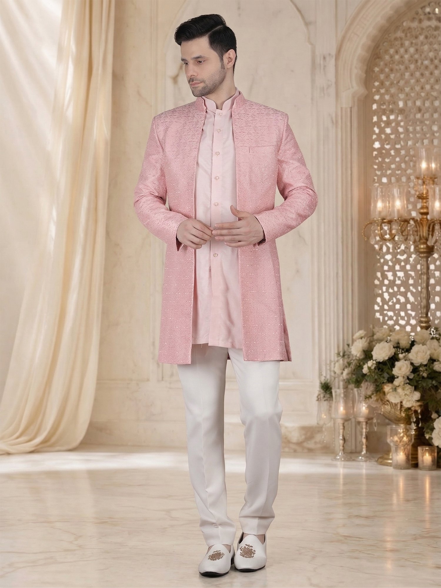 Blush Pink Embroidered Indo Western Sherwani for Men