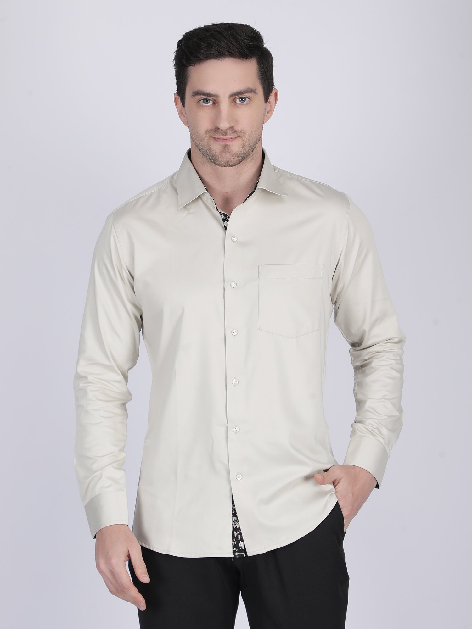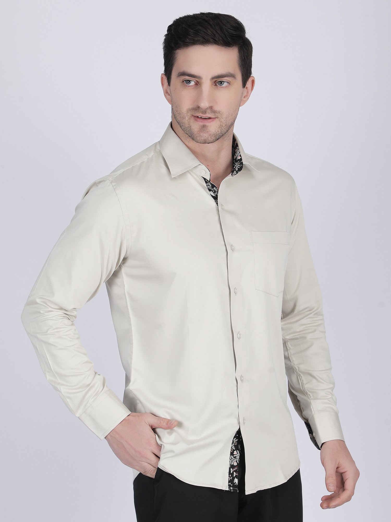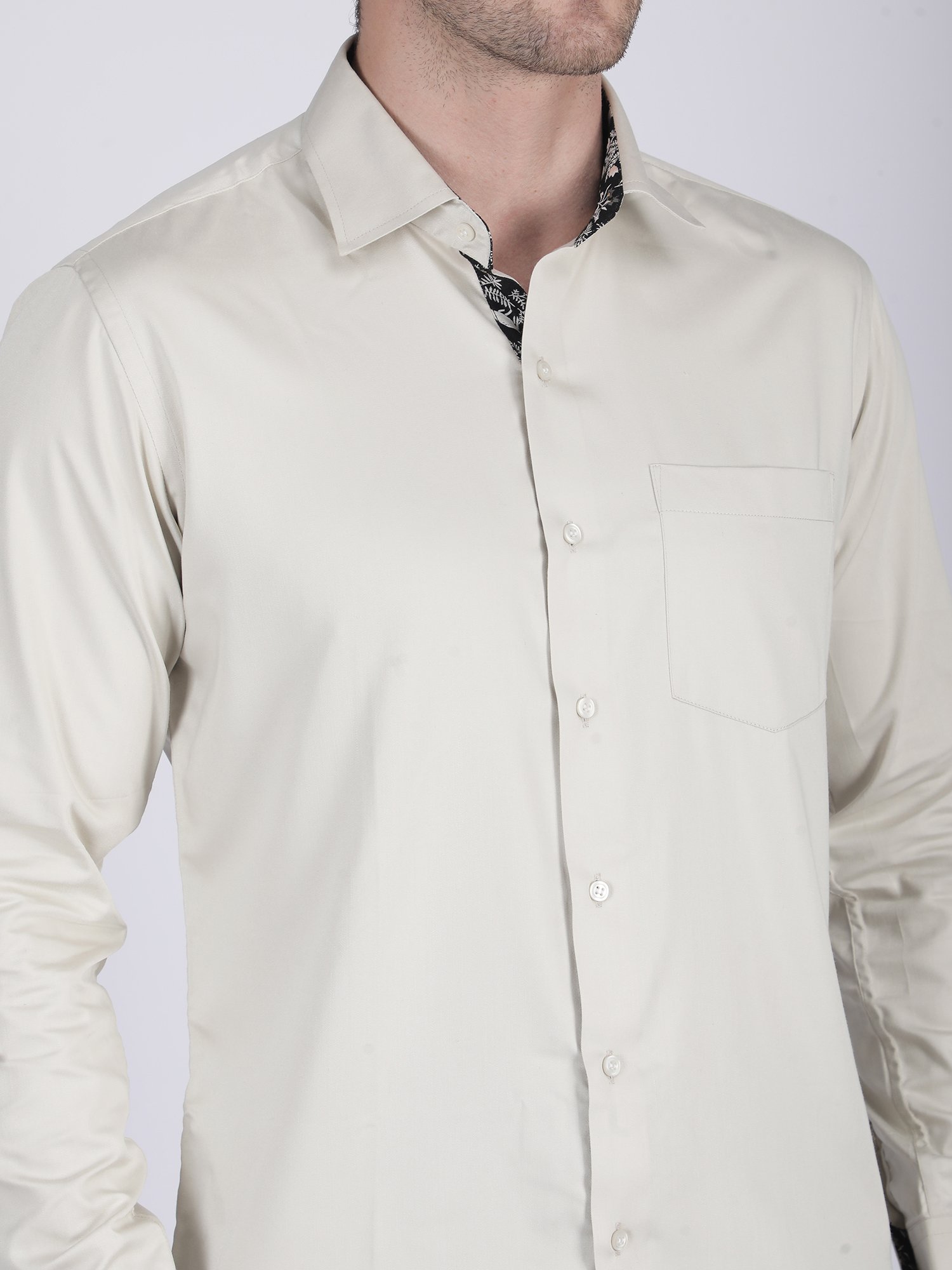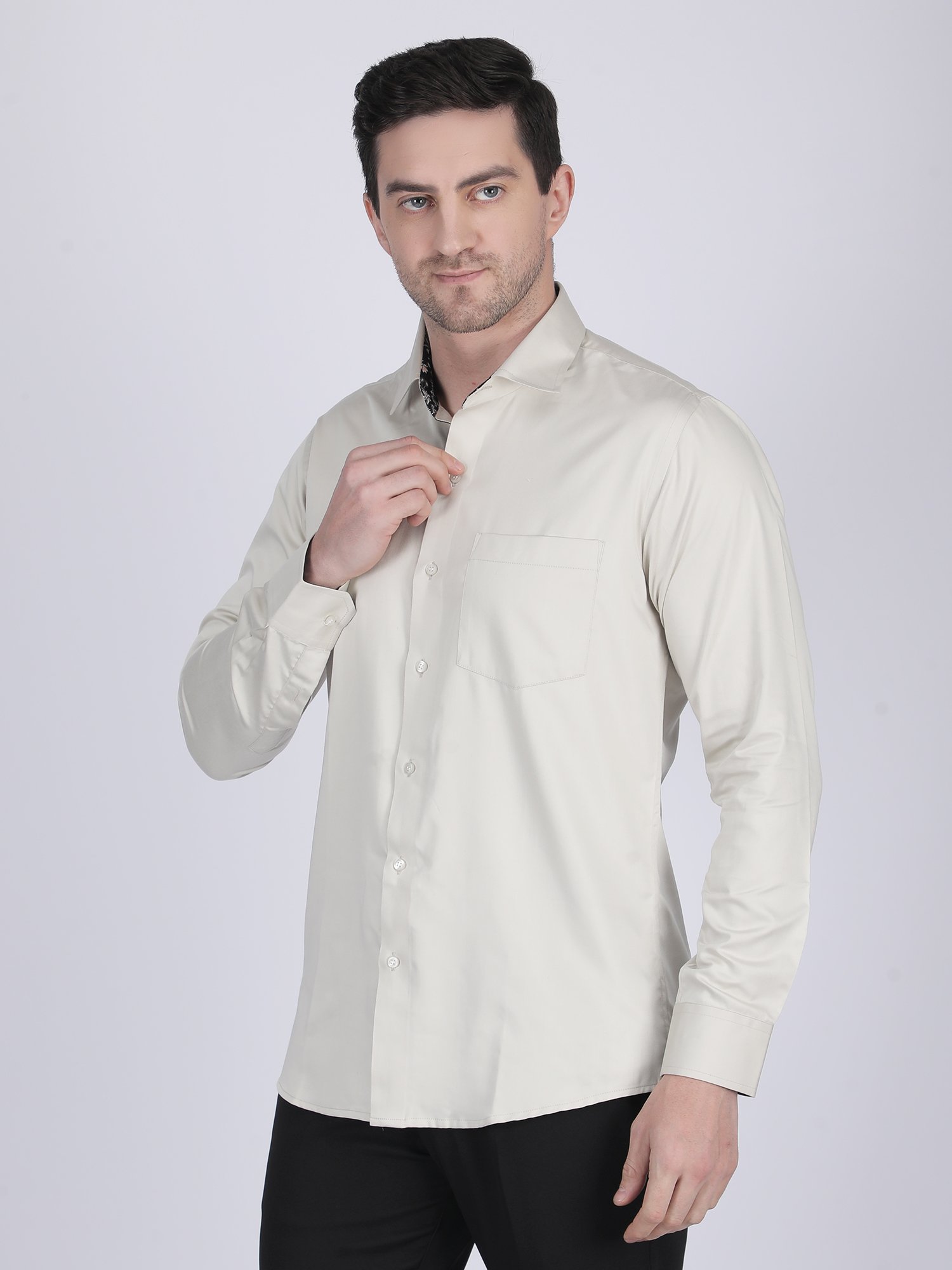 This Ivory Formal Shirt uses premium fabric that provides a soft touch and structured fall. It allows easy movement while maintaining a clean and neat appearance. In addition, precise stitching ensures durability and long-term wear. The collar, cuffs, and placket are designed to hold their shape, which enhances the overall premium finish.