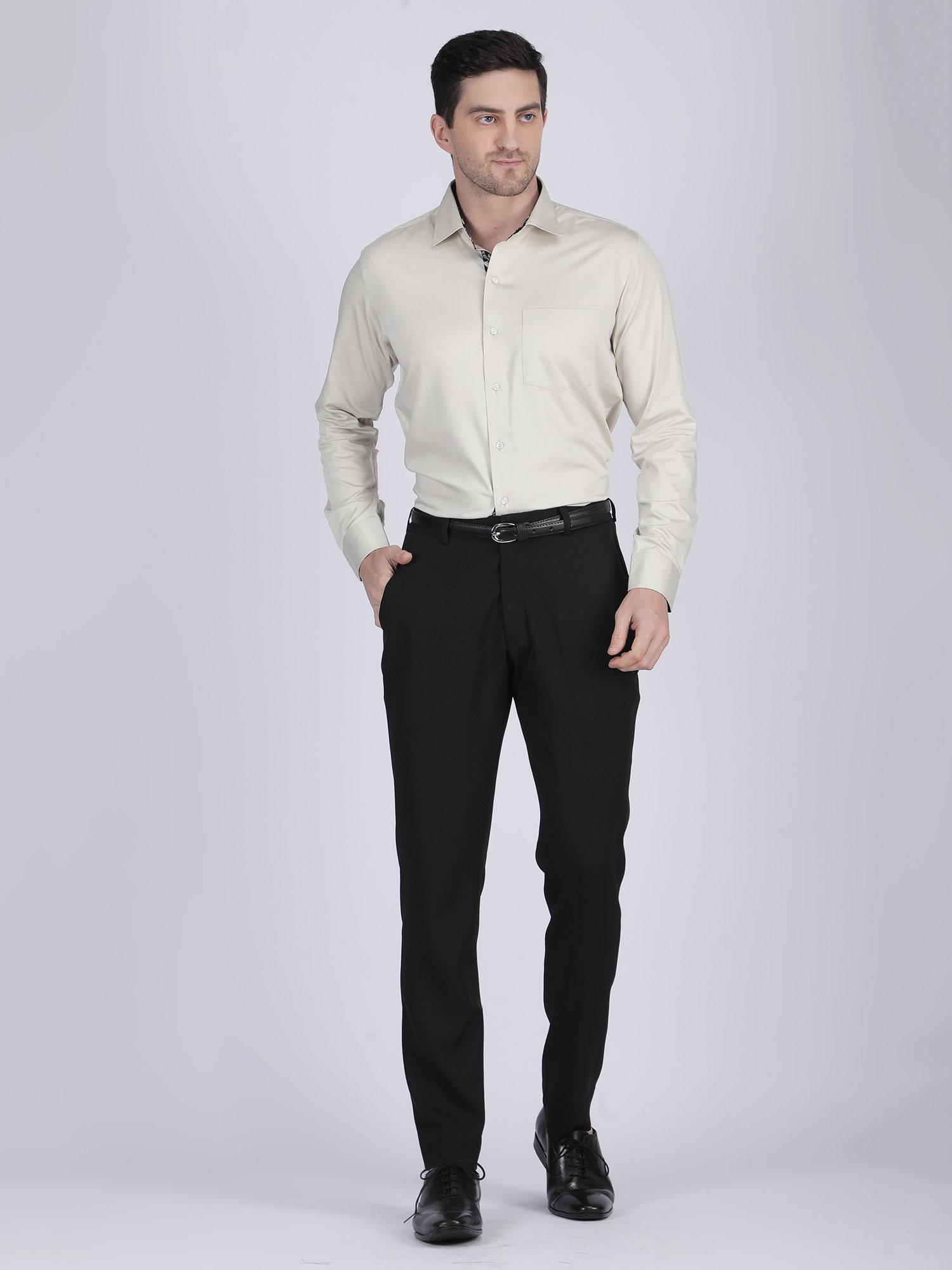The fabric feels smooth and breathable, which ensures comfort throughout the day. At the same time, the ivory tone adds depth and elegance without being overpowering. The tailored fit enhances body shape and maintains a sharp silhouette. This balance of comfort and structure makes it suitable for long working hours as well as reception or evening transitions. Therefore, this Ivory Formal Shirt becomes a refined choice for men who prefer understated luxury.