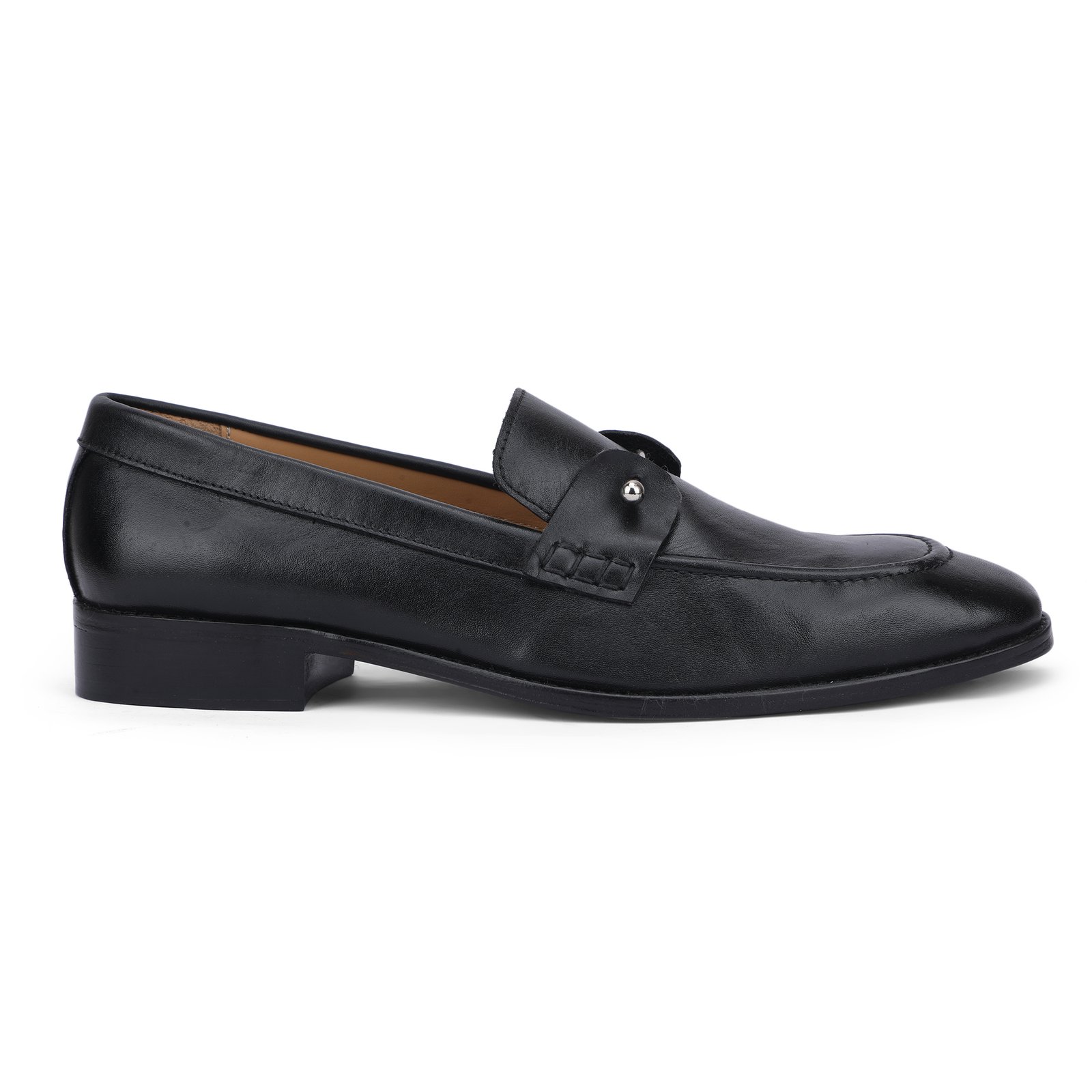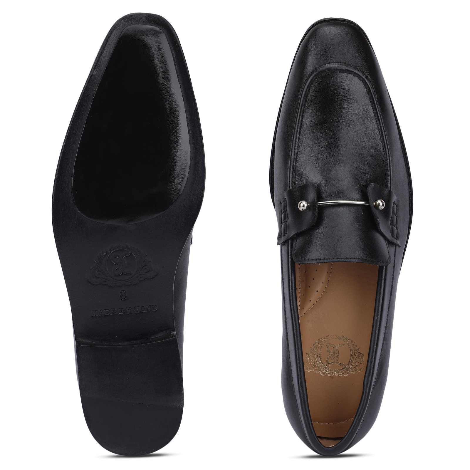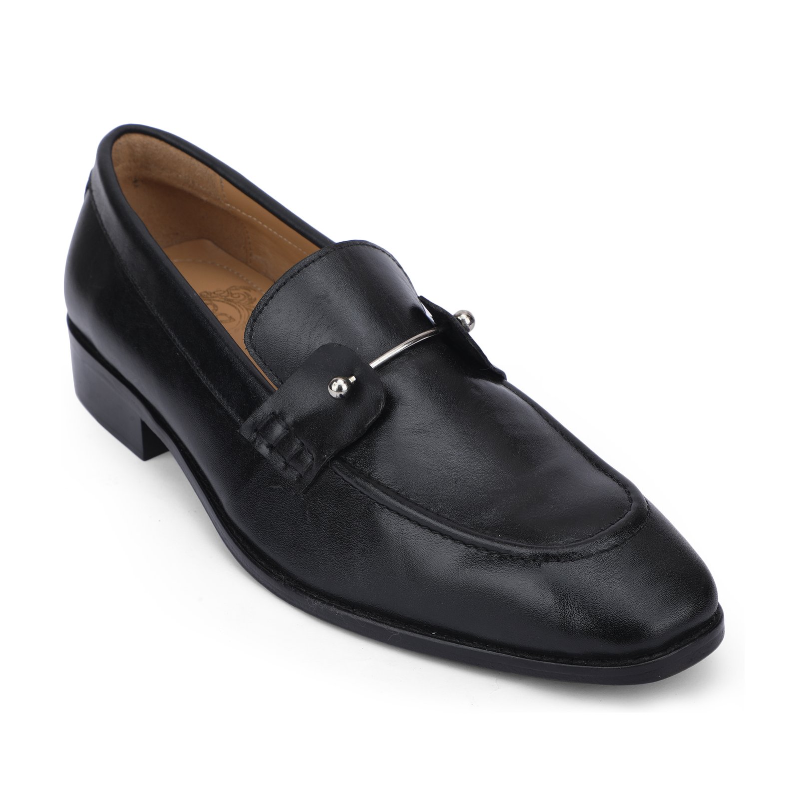 These Leather Formal Shoes are designed for formal occasions, evening events, and refined office wear where effortless elegance defines true luxury. The deep black leather finish creates a bold and timeless appearance, while the sleek slip-on loafer silhouette ensures ease and sophistication. The metal horsebit detail enhances the upper, so these Leather Formal Shoes deliver a refined balance of classic and modern style.