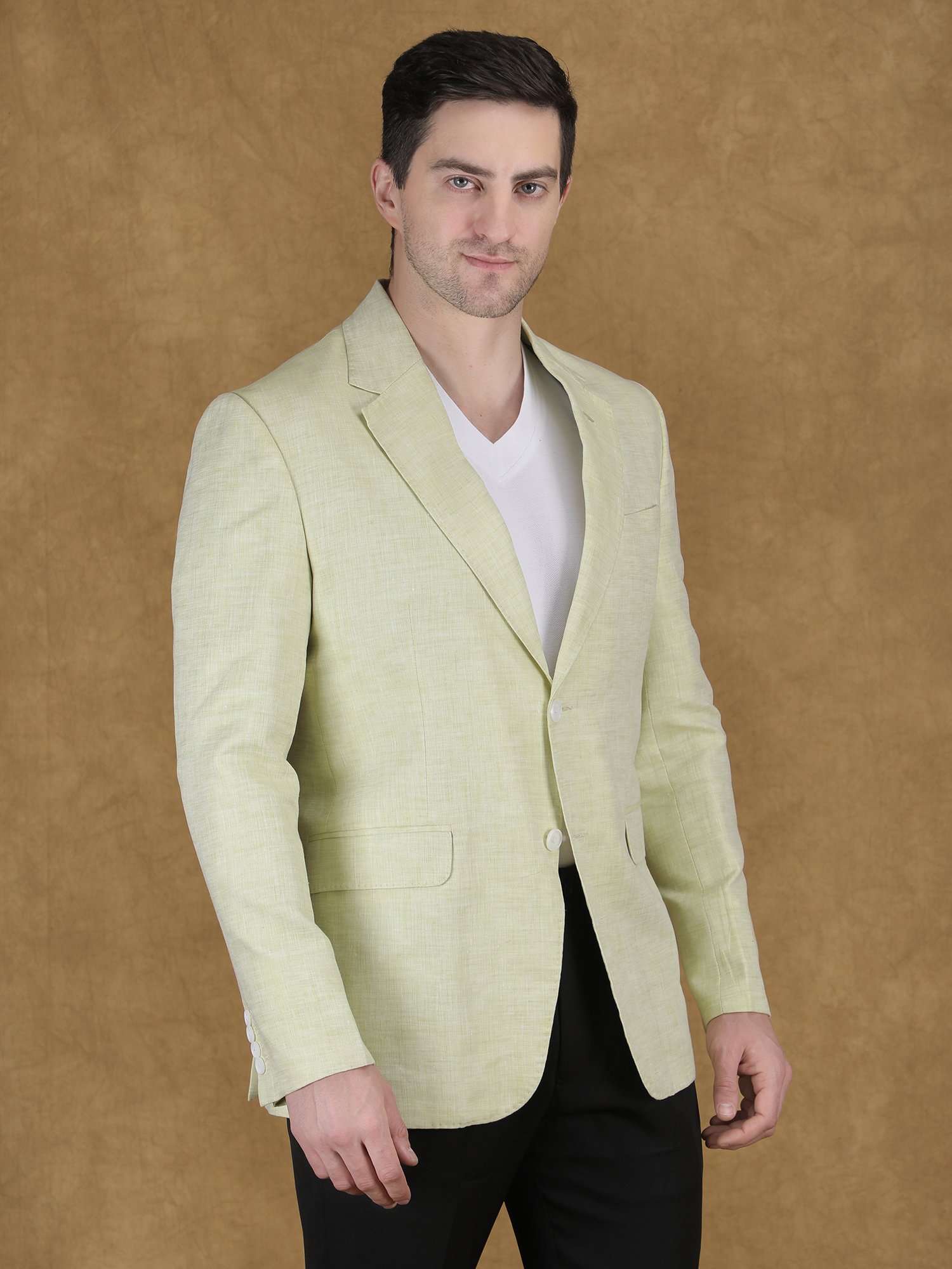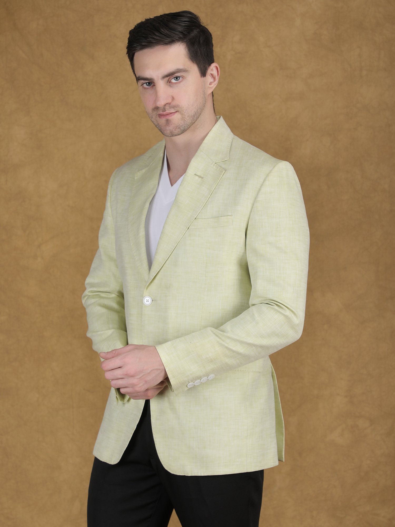 This Light Green Linen Blazer offers a refreshing and modern look designed for summer occasions and daytime events. The soft green tone brings a natural and calming aesthetic, making it perfect for men who prefer subtle yet stylish outfits. The design keeps a clean and minimal approach, allowing the color and fabric to define the overall appeal. Therefore, this Light Green Linen Blazer becomes an ideal choice for warm-weather dressing with a refined touch. Moreover, the light shade enhances versatility, making it suitable for both formal and semi-formal settings.