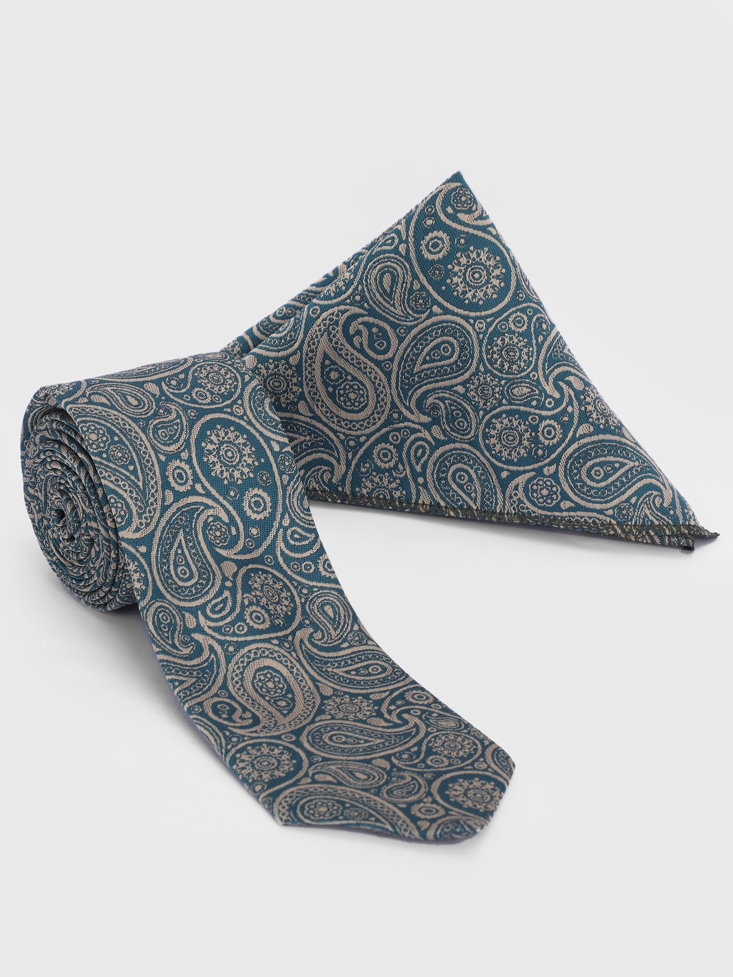 Luxury Sage Green Paisley Jacquard Tie & Pocket Square Set