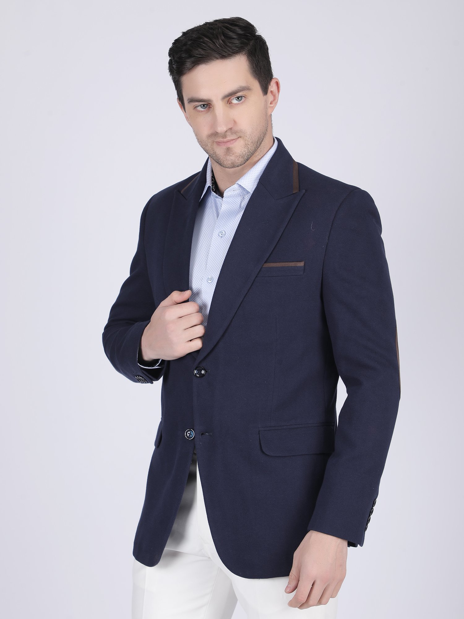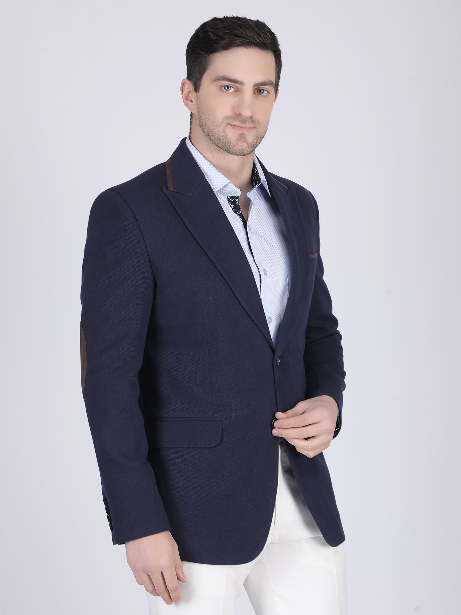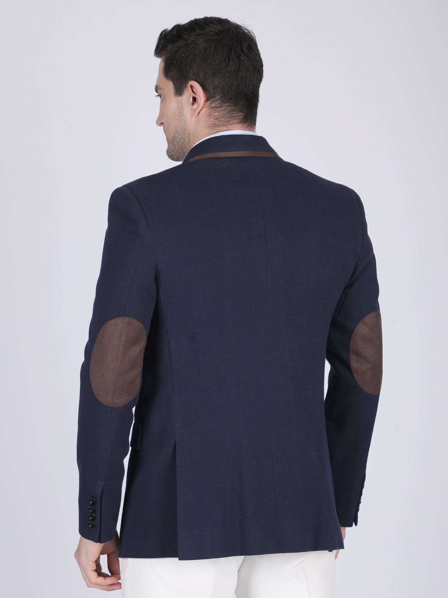 Navy Knitted Blazer with Elbow Patch for Casual Wear