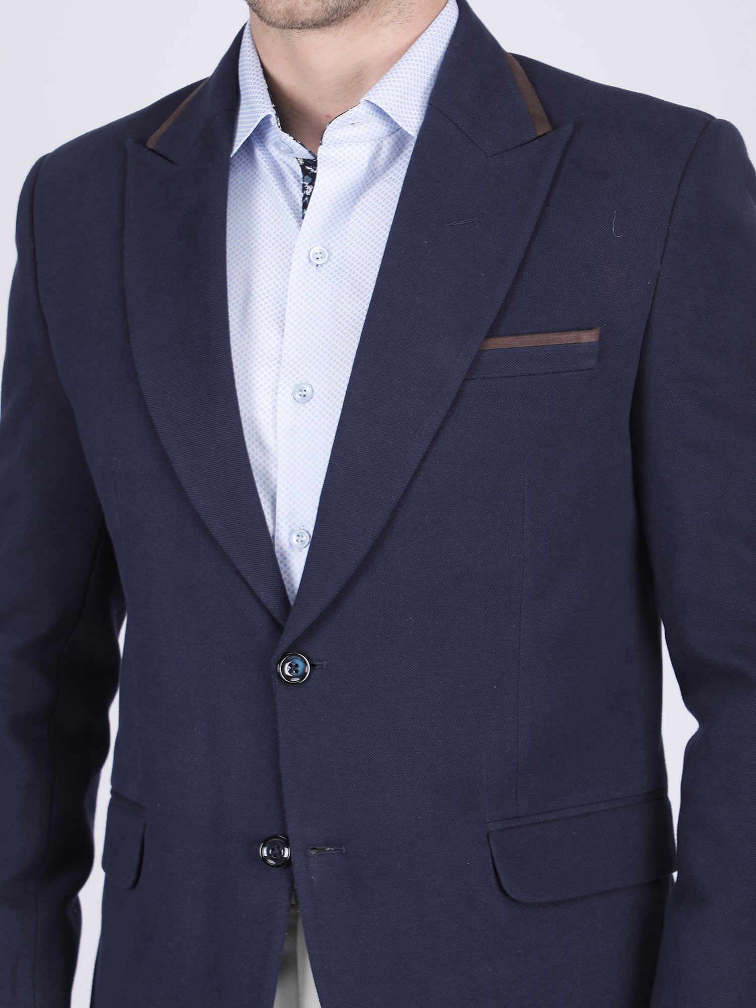 We craft this blazer using premium knitted fabric that provides flexibility, softness, and breathable comfort. The fabric allows easy movement, making it suitable for long hours of wear. The blazer features clean lapel structure, precise stitching, and a well-defined silhouette that maintains a polished appearance. The elbow patch trimming is carefully placed and stitched, adding both durability and a classic design element. Moreover, the combination of knit texture and structured tailoring creates a unique blend of comfort and sophistication. Each detail reflects thoughtful craftsmanship focused on modern lifestyle needs.
