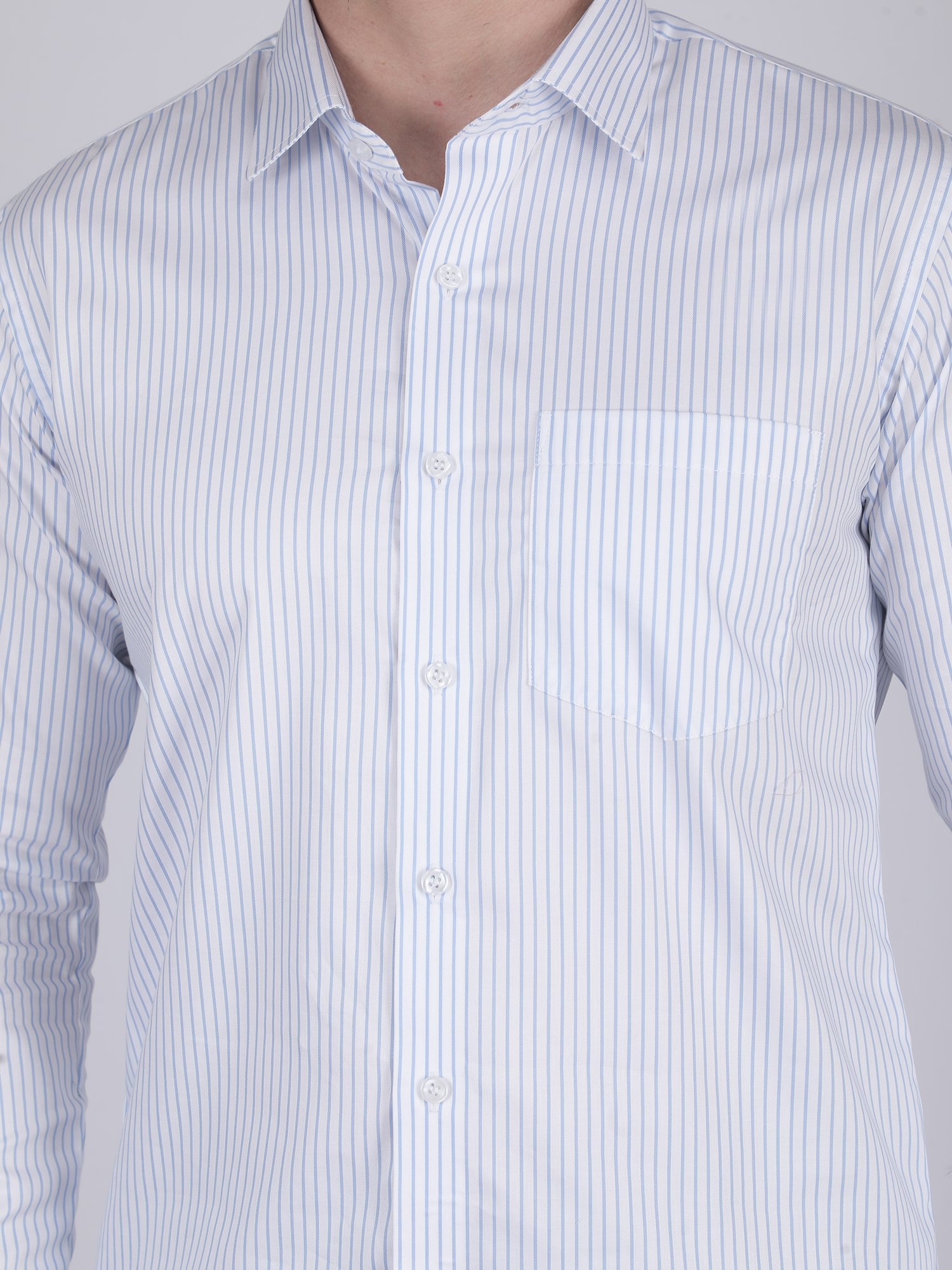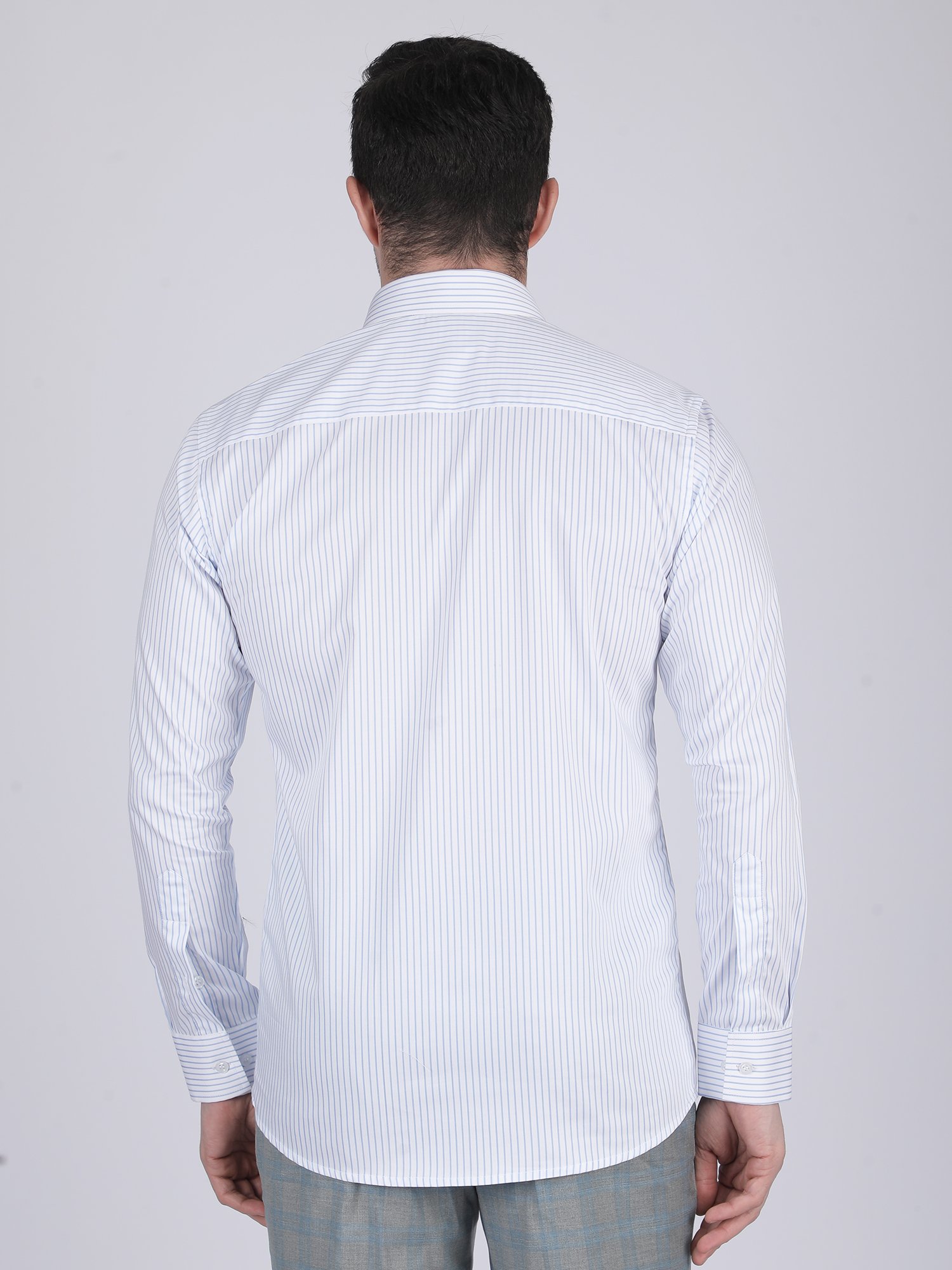 This shirt is ideal for office wear, business meetings, reception events, and evening occasions. The blue stripe pattern adds a fresh and professional look. The tailored fit ensures a confident and well-defined appearance across all settings.