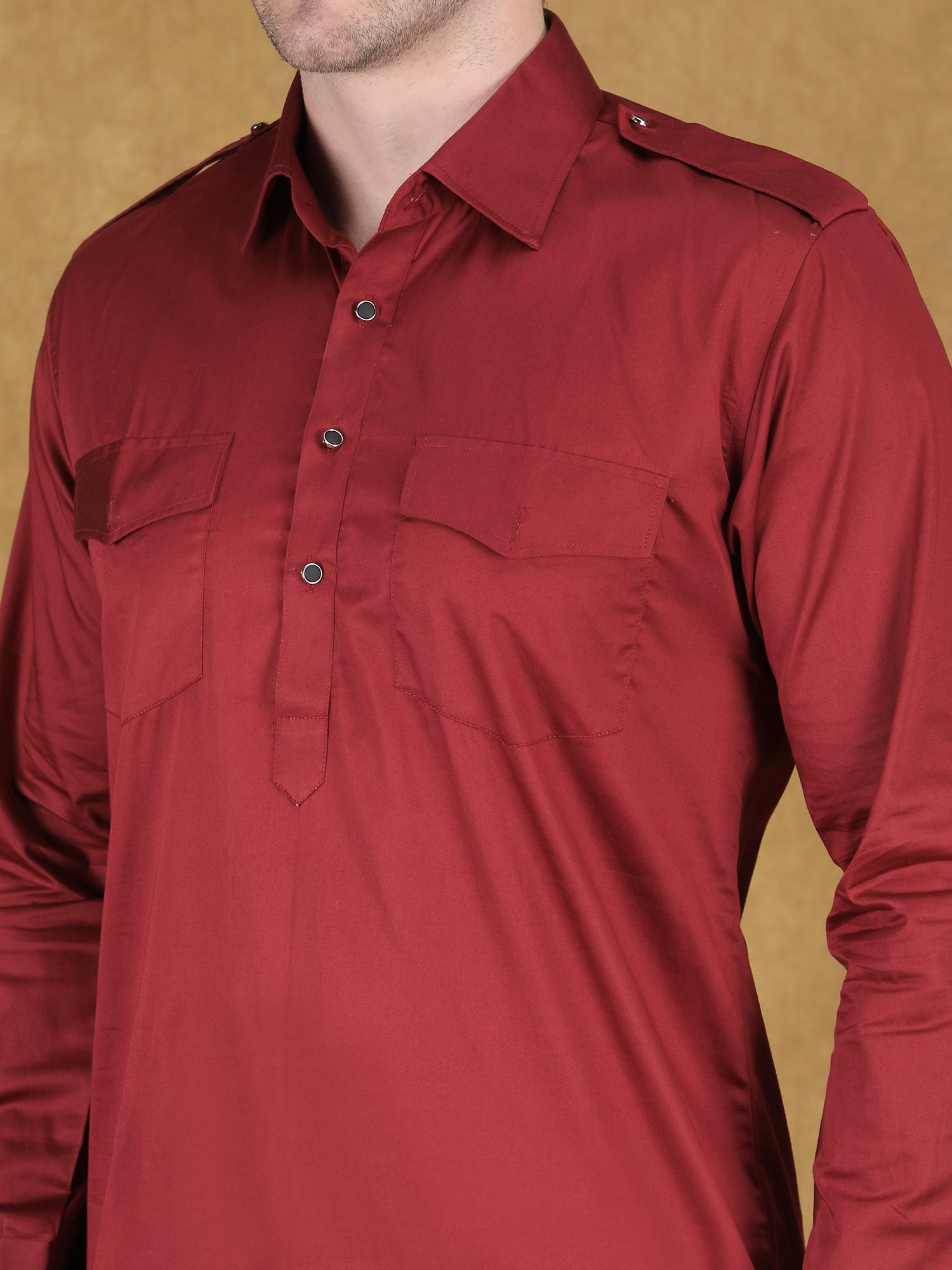 This kurta works perfectly for reception events, festive gatherings, and evening functions. The rich red color creates a bold and confident presence, while the Pathani style adds a unique and contemporary edge. Therefore, you can carry this outfit with ease and strong style.