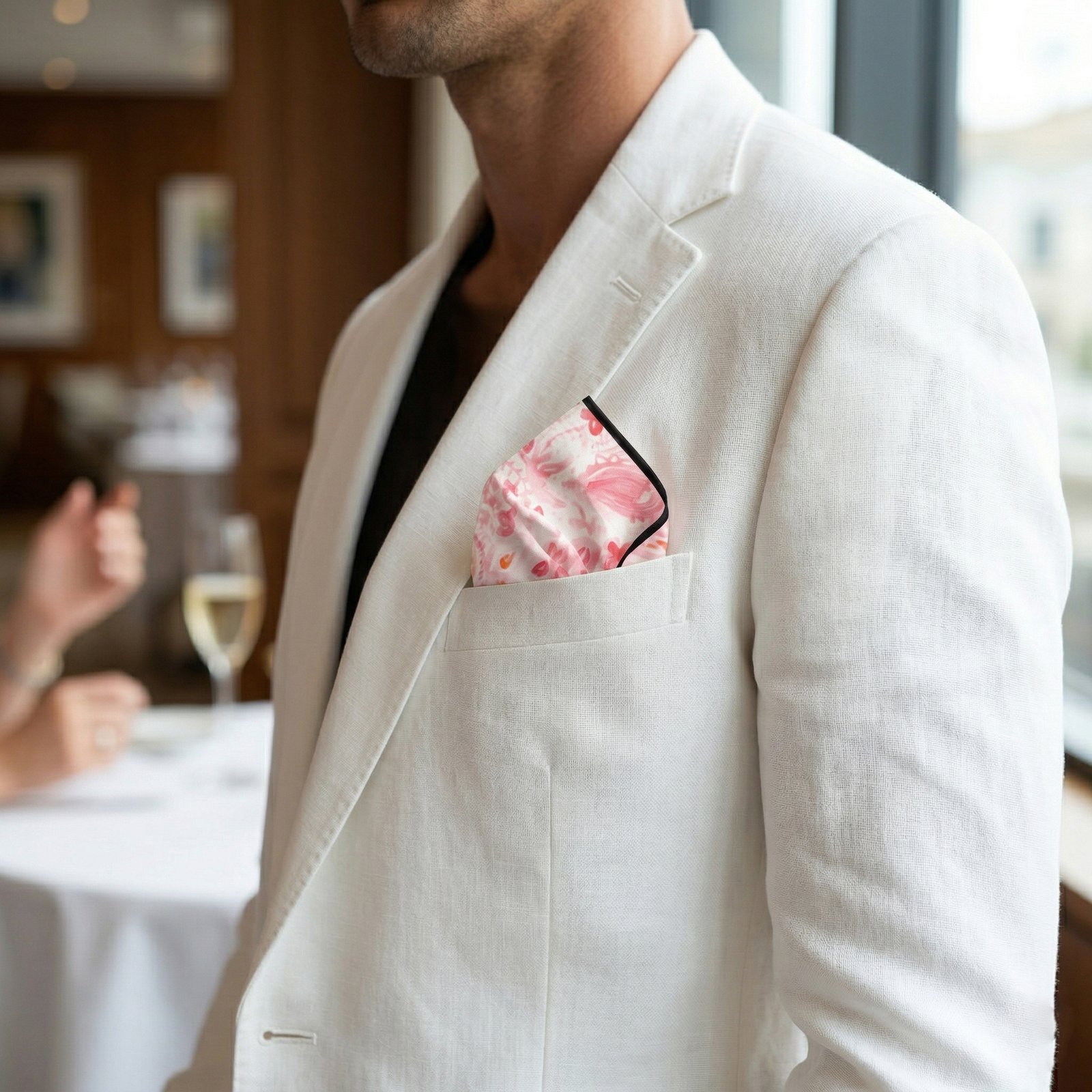 Elevate your ensemble with this crimson silk pocket square, designed with a regal aesthetic. Crafted from premium silk, it offers a rich texture and refined finish, making it a perfect accessory for formal and festive occasions.