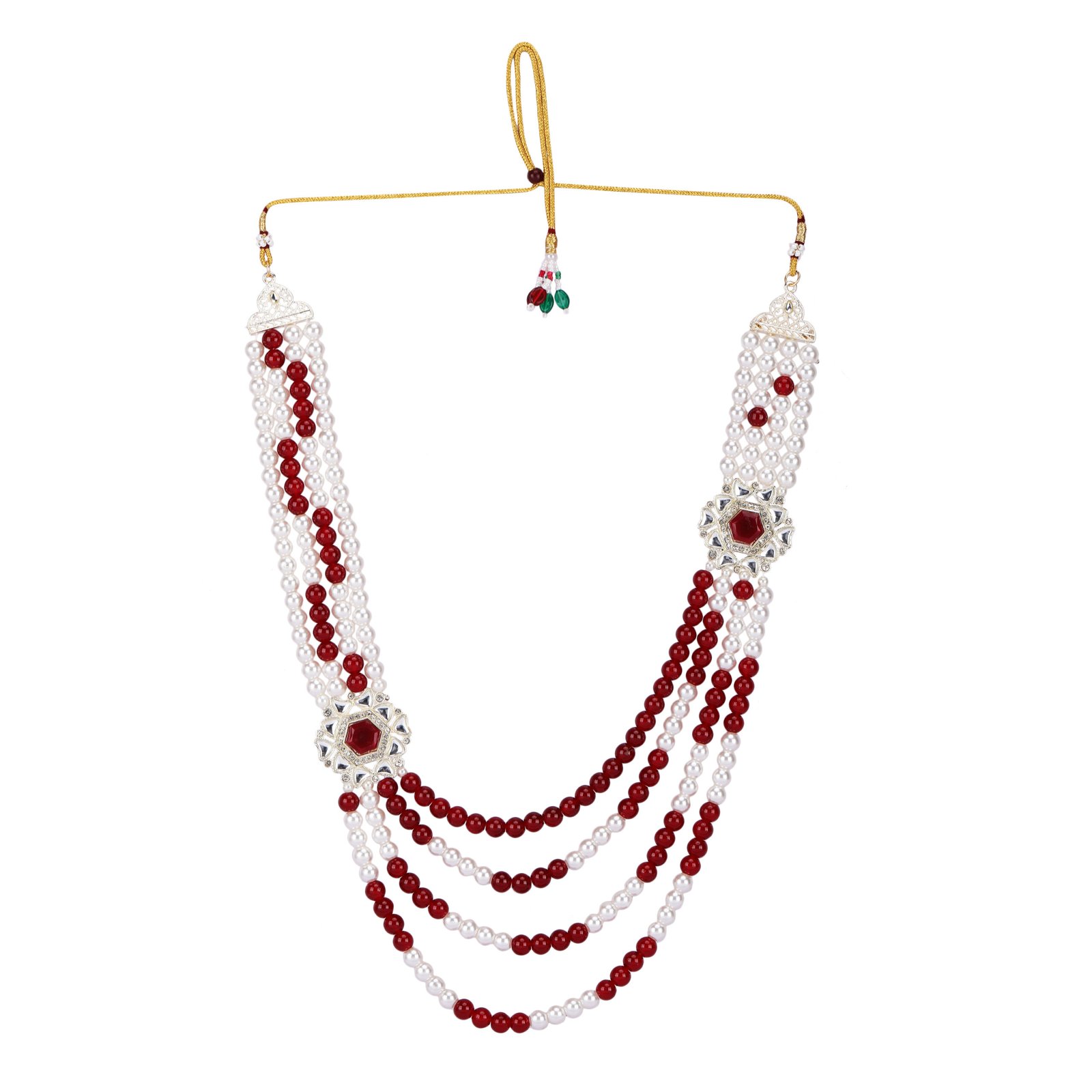 Royal Pearl & Ruby Sherwani Mala for Groom