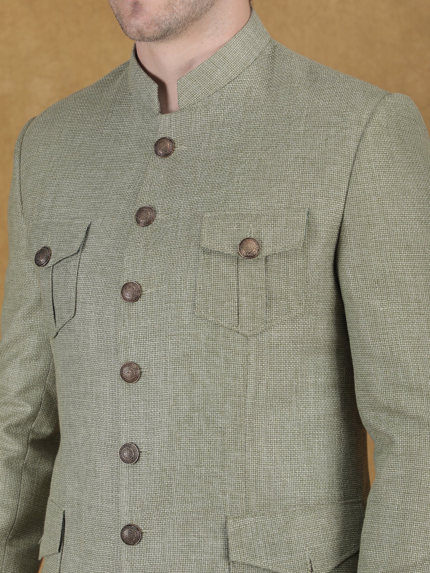 Sage Premium Suiting Fabric Bandhgala for Reception