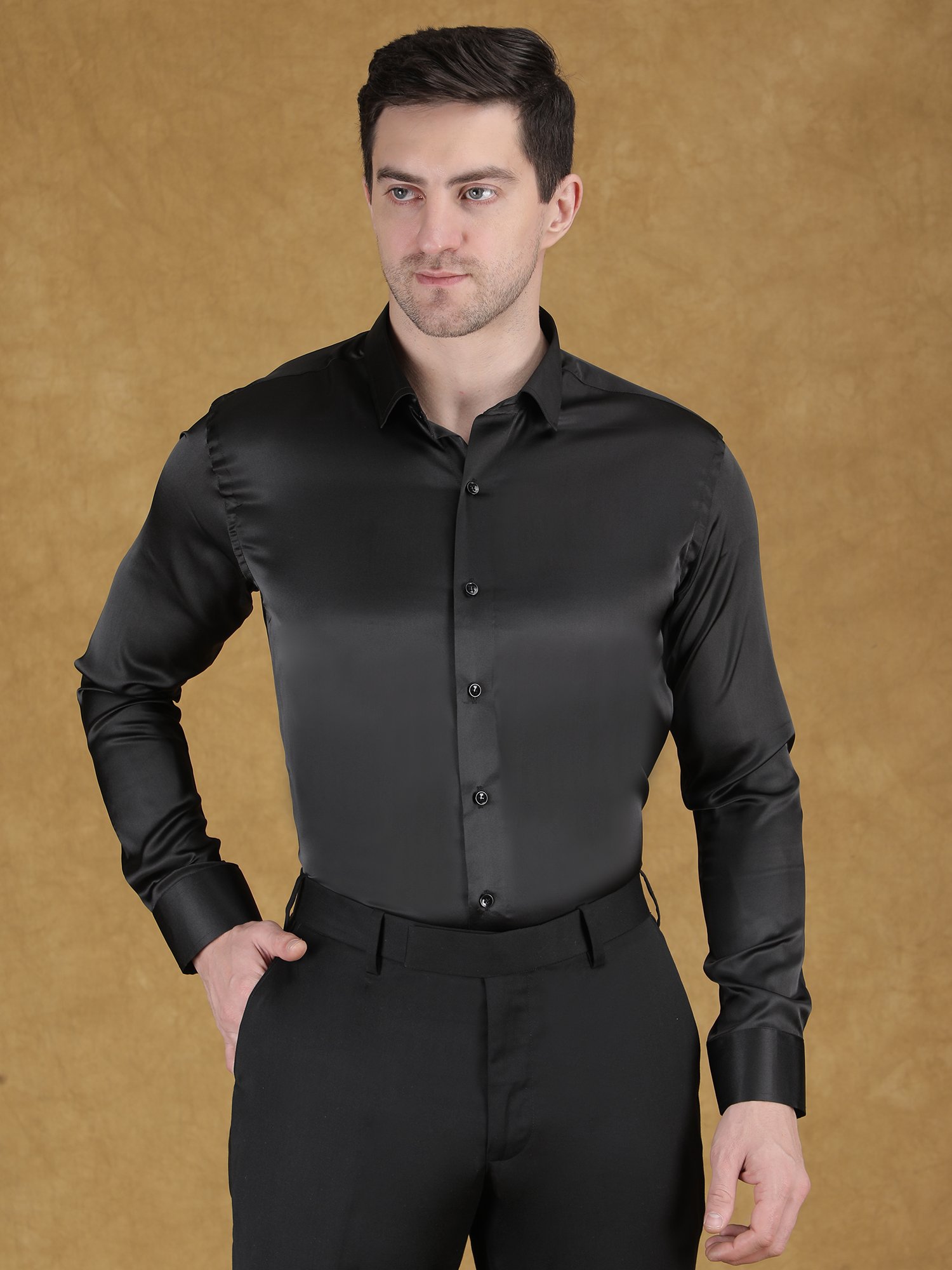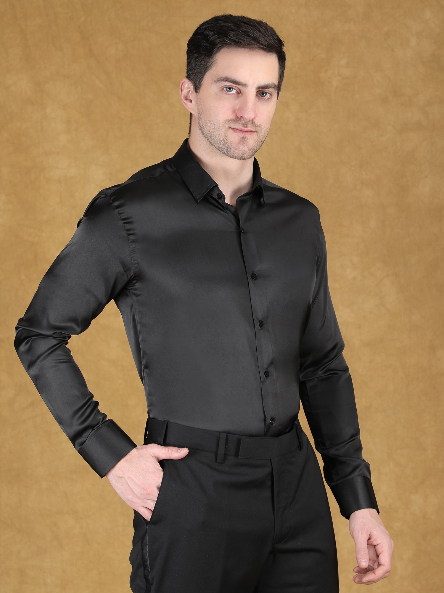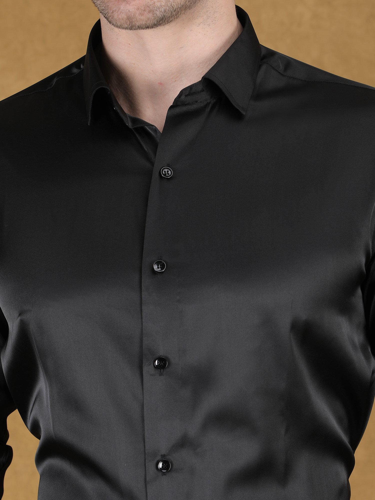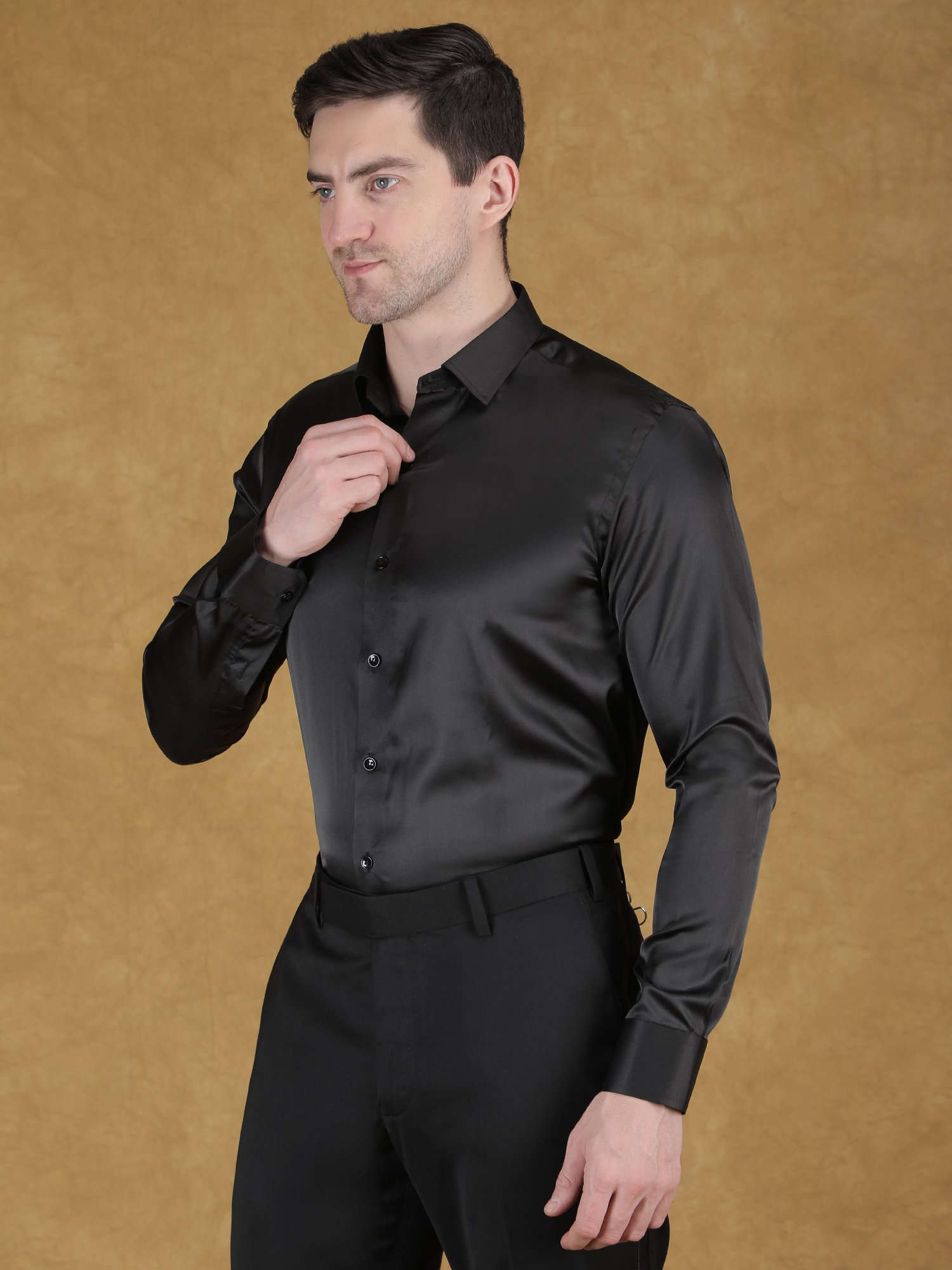 Satin Formal Shirt Black Tailored Fit Premium Finish