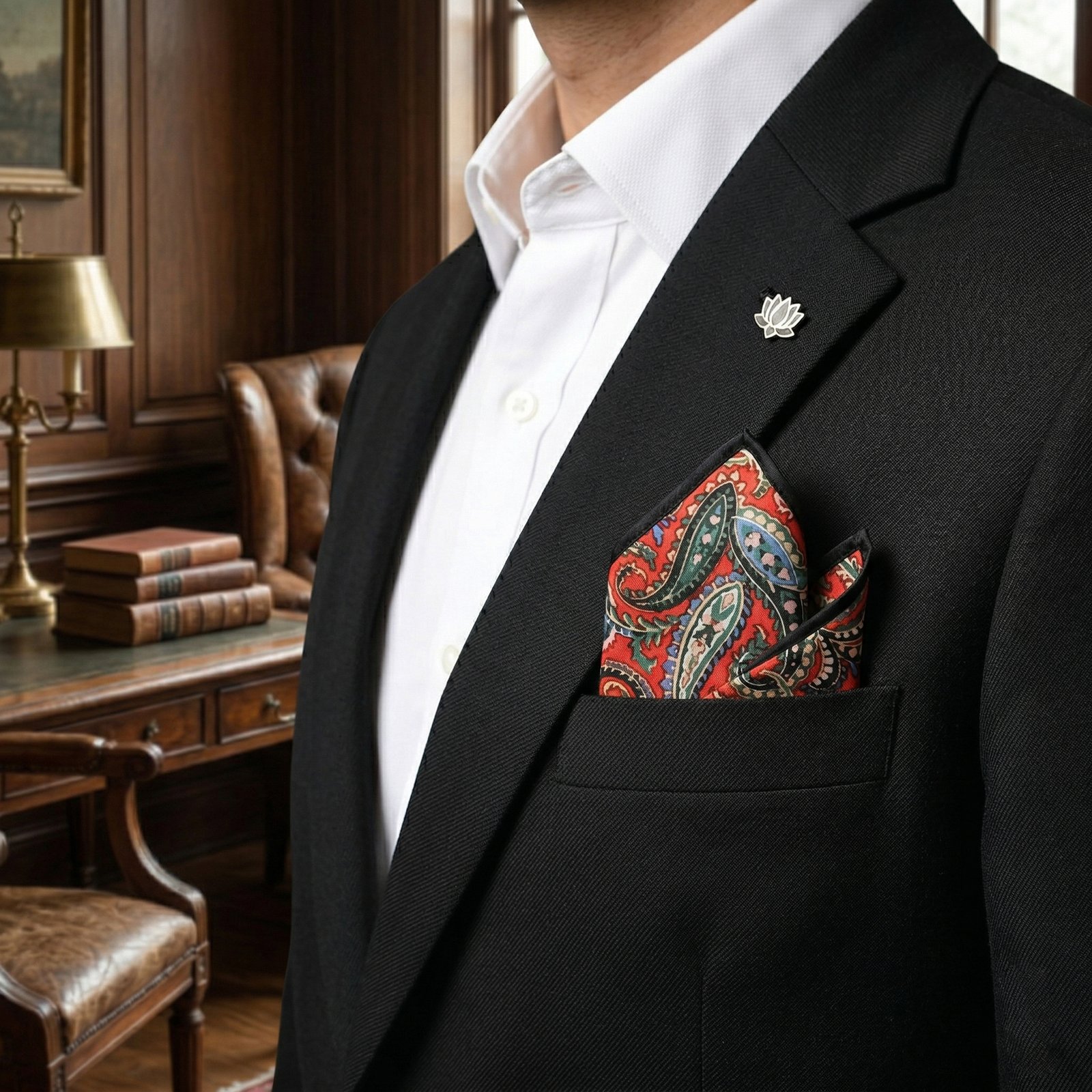 Pairs beautifully with navy, black, and grey suits. Style with a crisp white shirt for a refined look. Ideal for weddings and evening occasions.