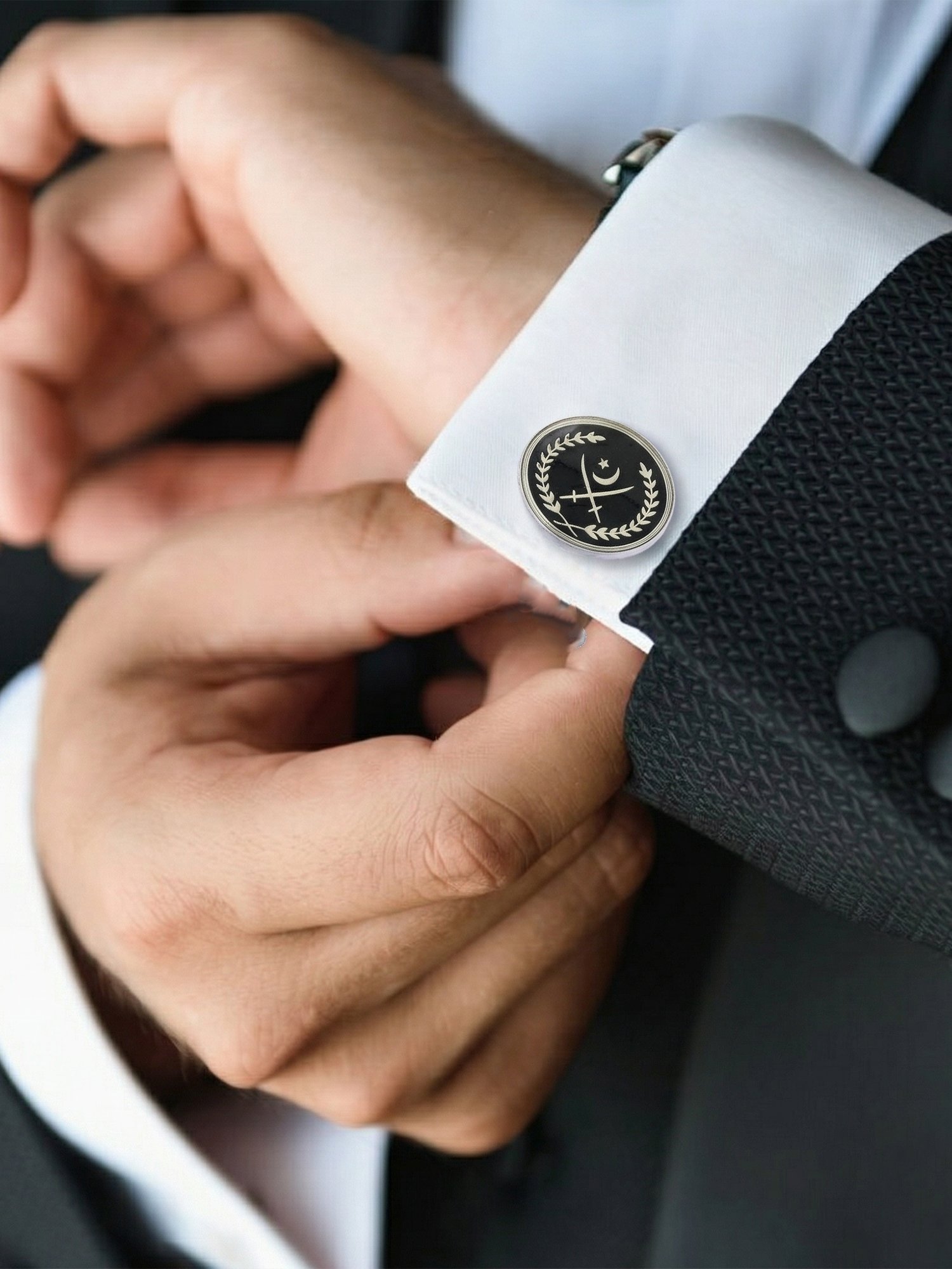 Timeless elegance with a vintage soul, these cufflinks feature a deep black dial accented with intricate gold-toned detailing, framed in a sleek silver-tone finish. The design brings a heritage-inspired charm, making it a perfect accessory for men who appreciate classic luxury with a distinctive touch.