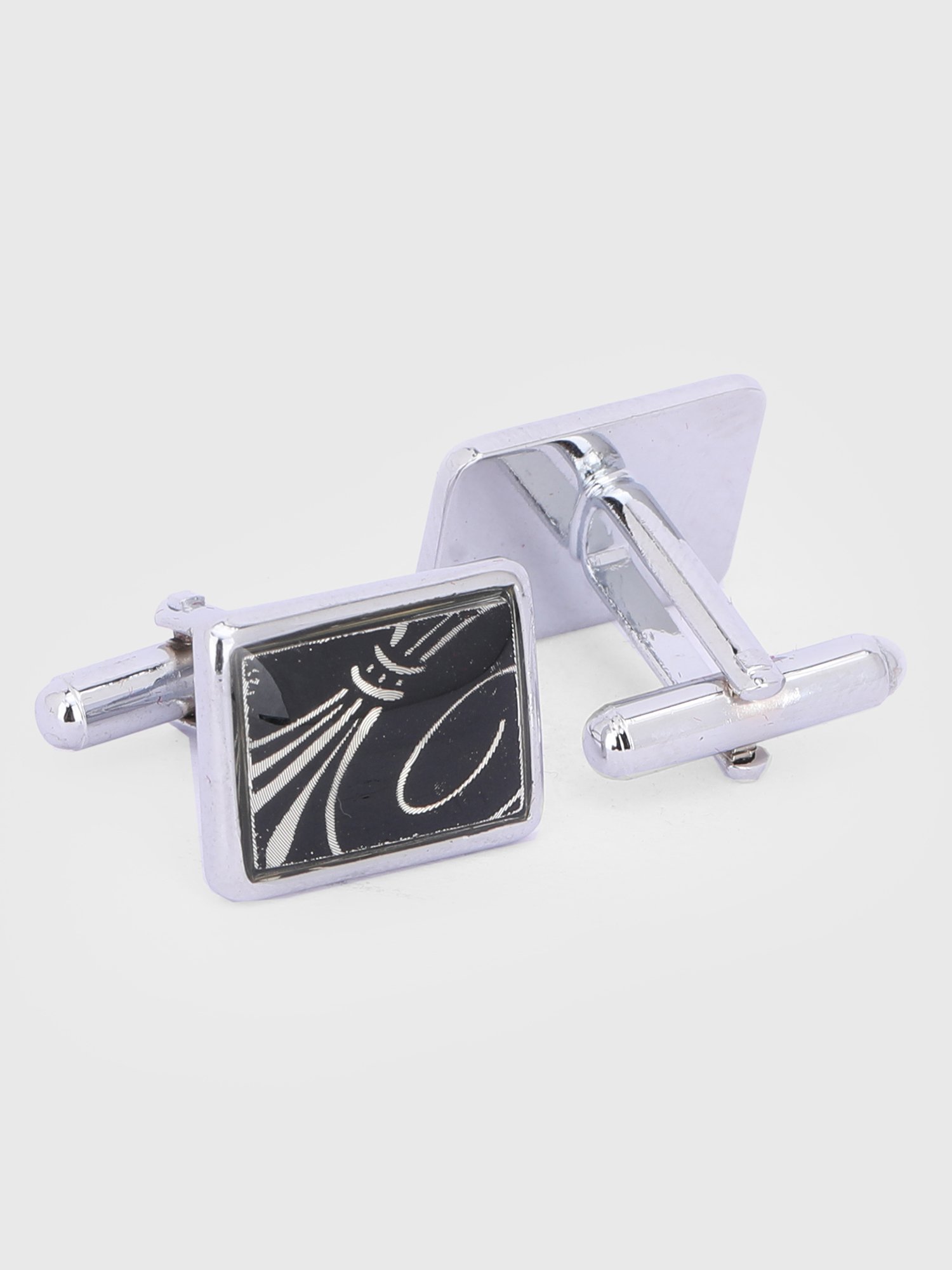 Silver-Tone Square Black Artistic Pattern Cufflinks
