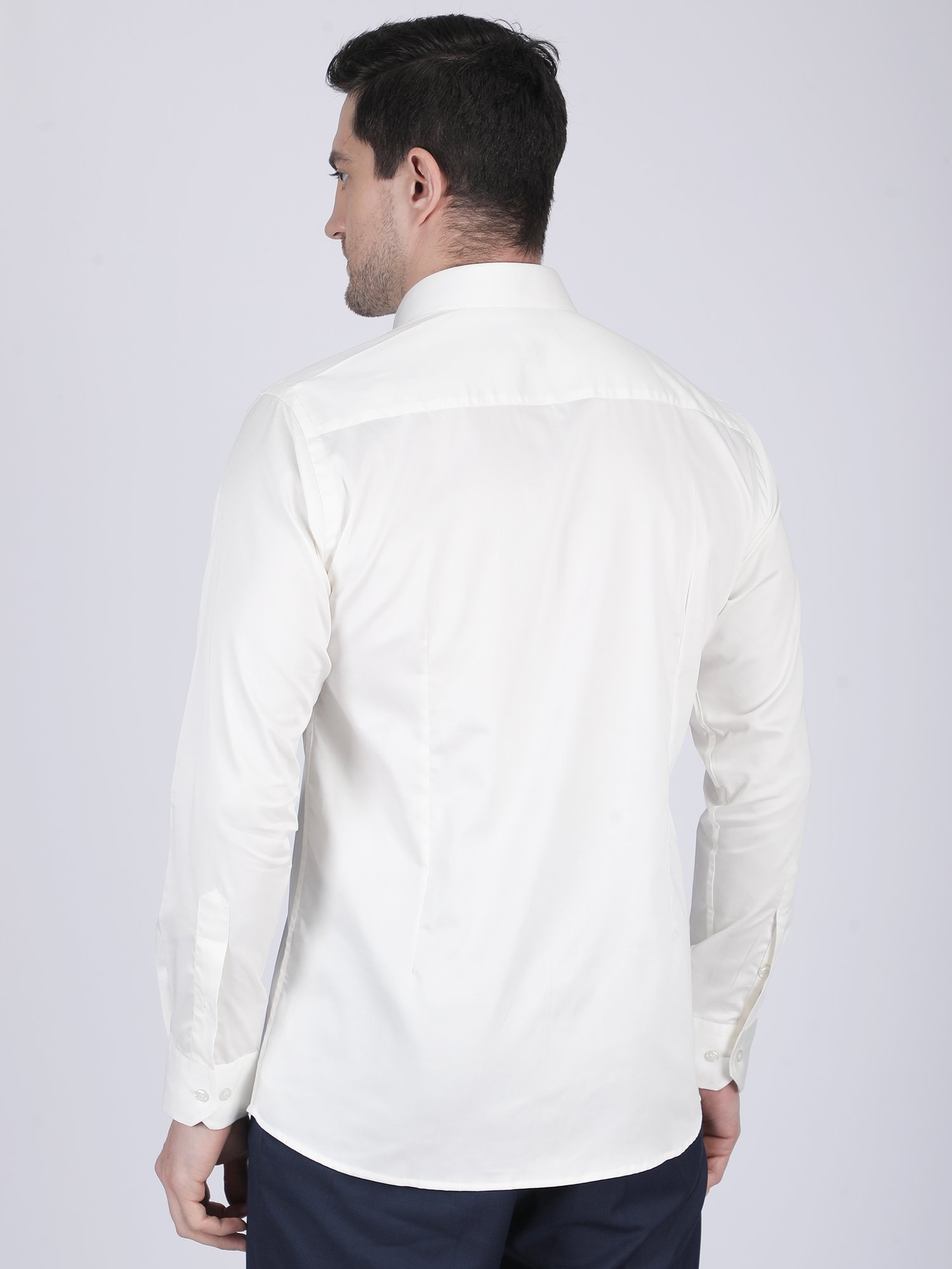 White Cotton Poplin Formal Shirt with Tailored Fit for Reception