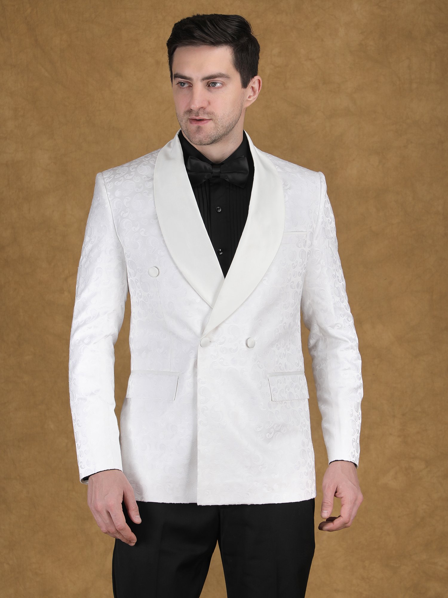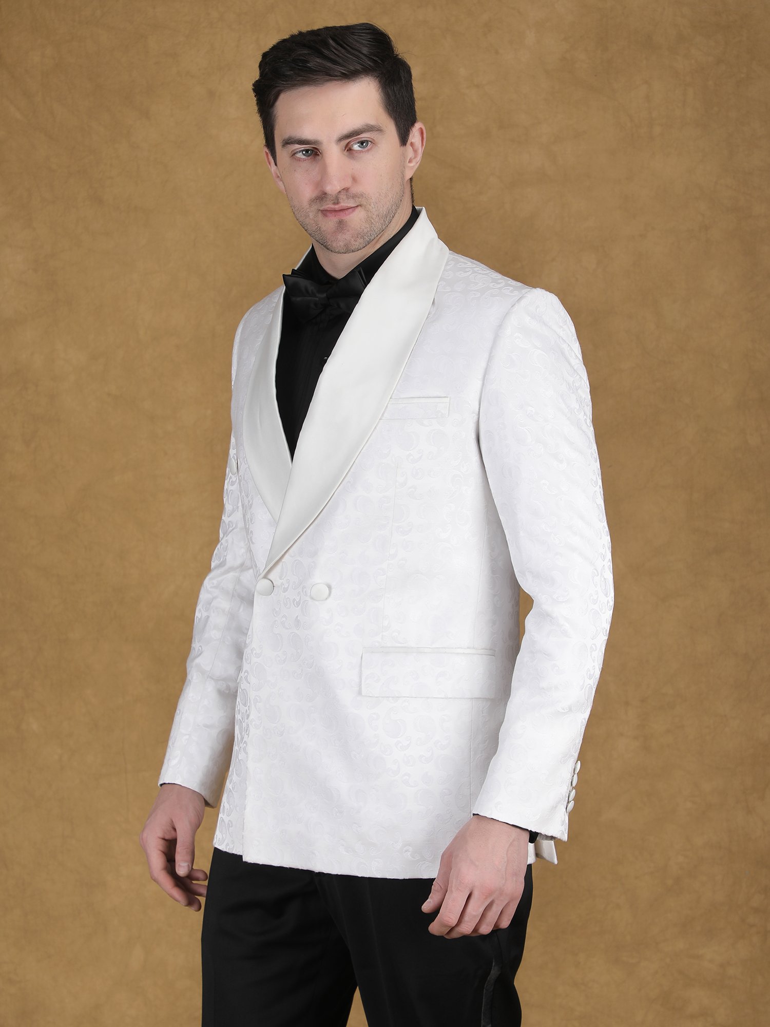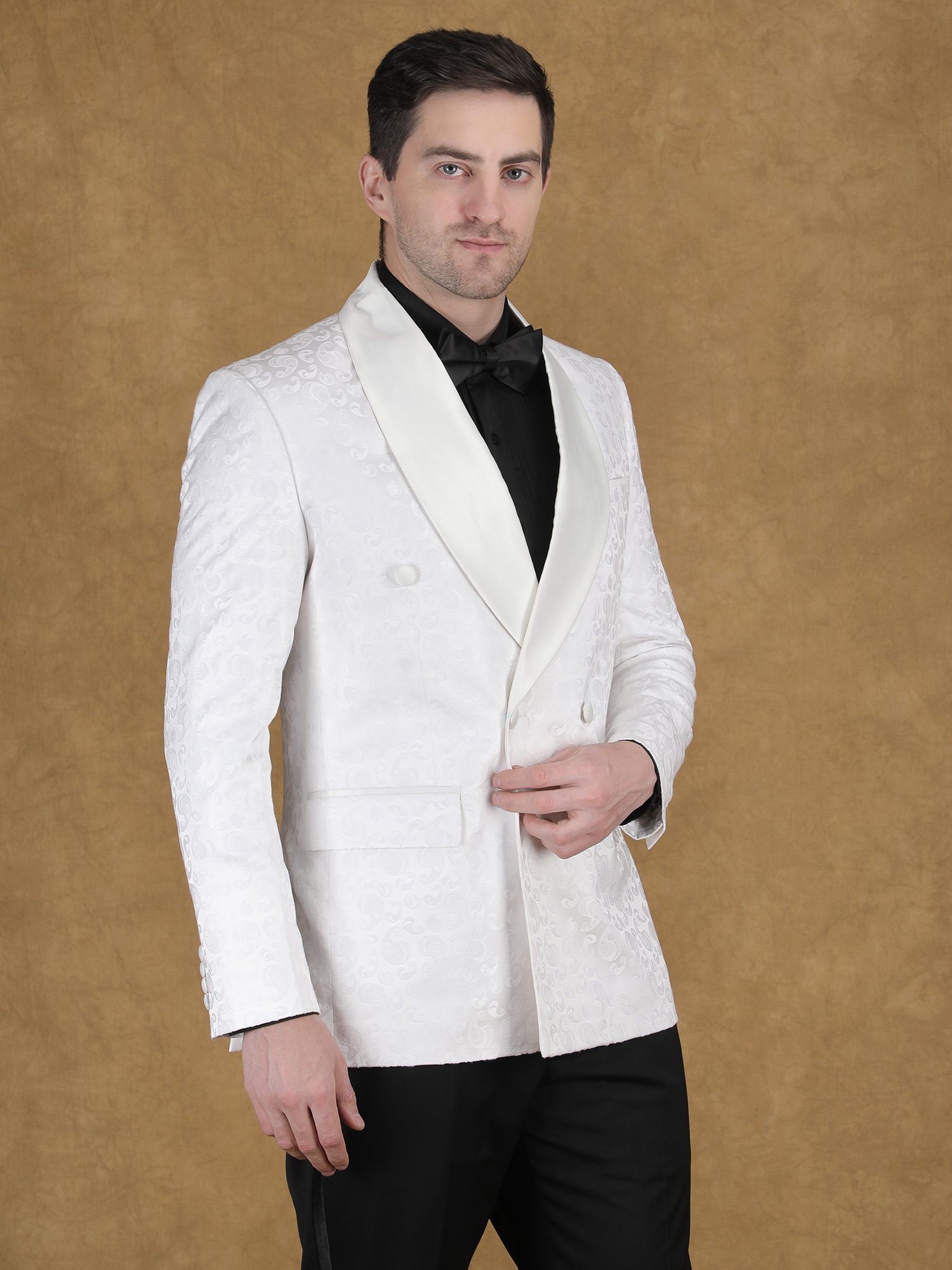 This White Reception Tuxedo Blazer suits receptions, cocktail parties, and formal evening events. The clean white tone stands out effortlessly, especially when paired with darker inner layers. Therefore, it creates a bold yet elegant appearance without requiring heavy styling.